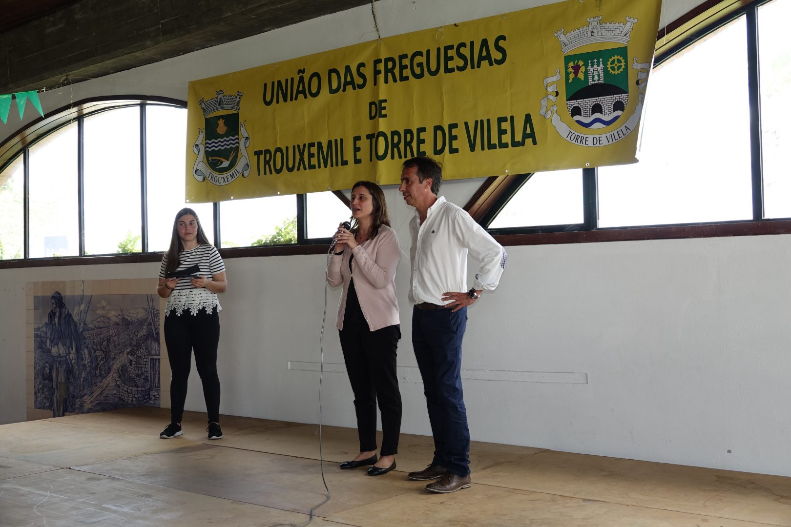 A vereadora da Cultura da Câmara Municipal de Coimbra, Carina Gomes, acompanhada pelo presidente da União das Freguesias de Trouxemil e Torre de Vilela, Horácio Costa, inaugurou, esta tarde, a primeira Festa da União das Freguesias de Trouxemil e Torre de Vilela, que está a decorrer, até amanhã, nas Caves de Coimbra.