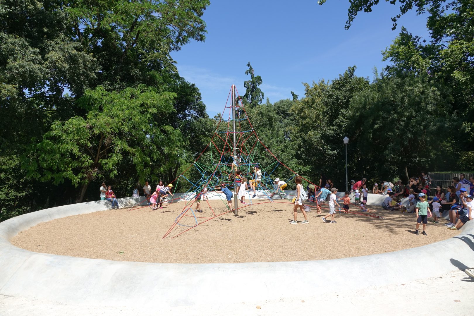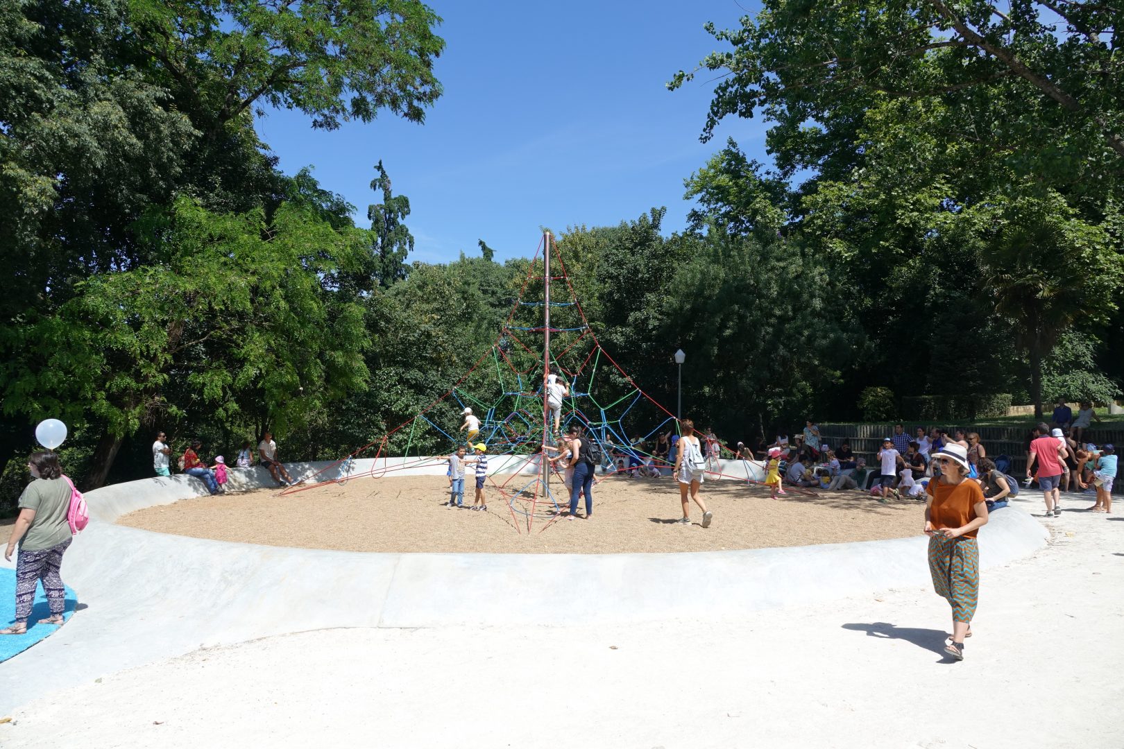 O parque infantil, que fica situado a norte do patamar onde se encontra a estátua de Tritão, no topo da escadaria do jardim, está inserido dentro de um círculo, um elemento que surge várias vezes no jardim, e conta com uma estrutura de trepar (vulgarmente conhecida por ‘aranha’), que permite observar as copas das árvores do jardim de um ponto elevado, e um baloiço em cesto, equipamento acessível a crianças com mobilidade condicionada e passível de ser usado por mais que uma criança simultaneamente.