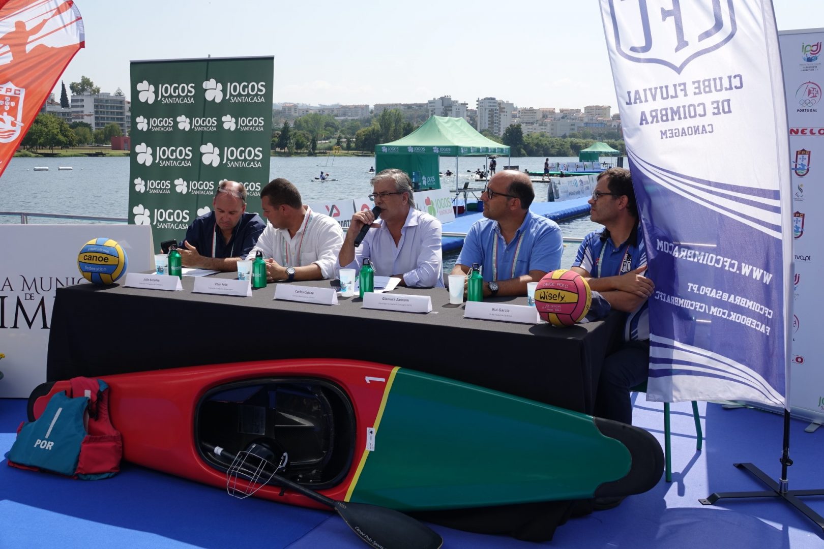 A conferência de imprensa contou ainda com a participação de Rui Garcia, presidente do Clube Fluvial de Coimbra, e de Gianluca Zannoni, da Associação Europeia de Canoagem.