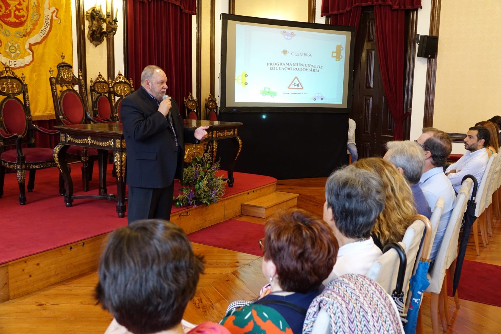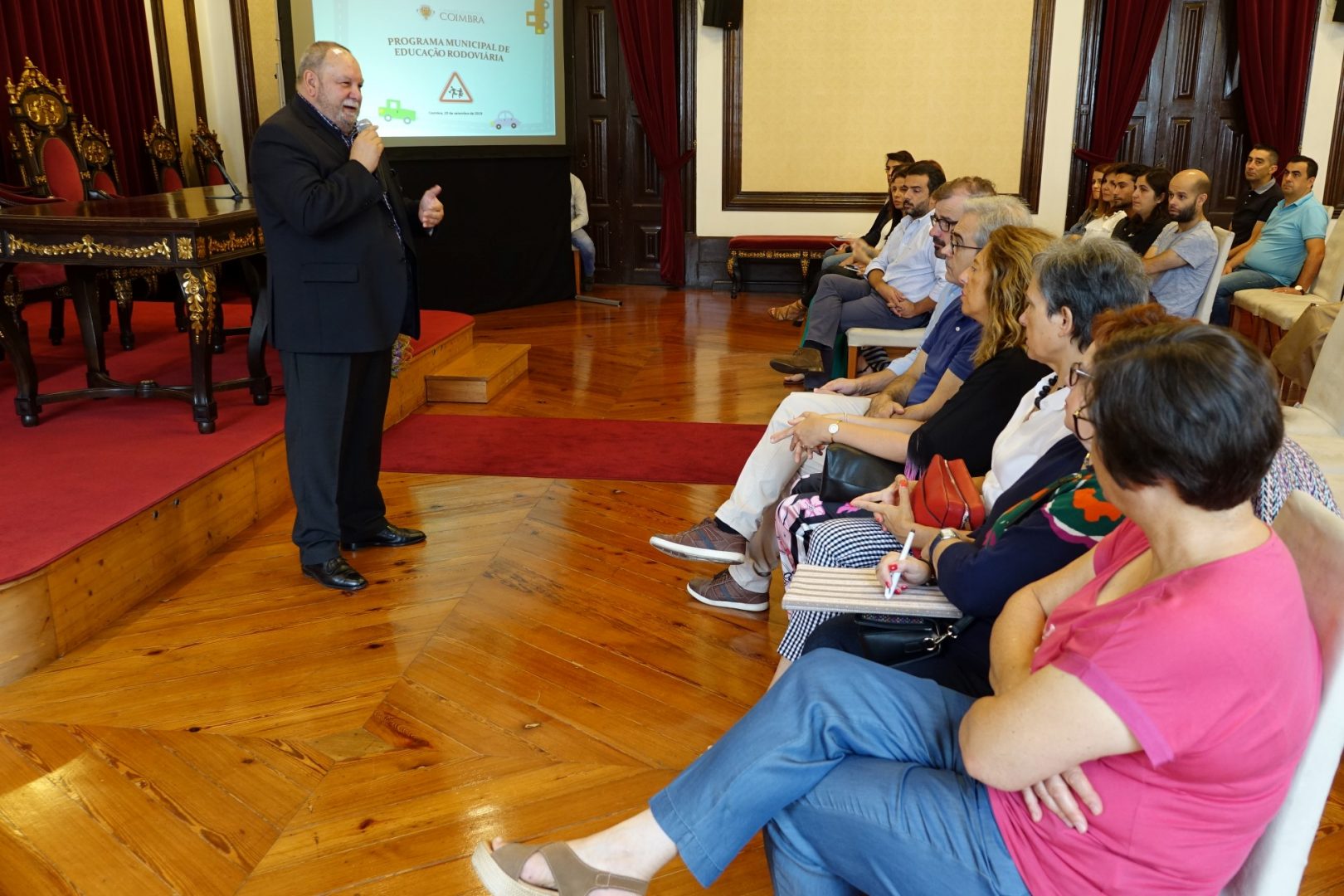 A Câmara Municipal (CM) de Coimbra apresentou hoje publicamente, no Salão Nobre dos Paços do Município, os traços gerais do Programa Municipal de Educação Rodoviária, que pretende começar a implementar em parceria com os Agrupamentos de Escolas, nas turmas do pré-escolar e do 1º Ciclo do Ensino Básico (CEB) da rede pública concelhia. Um programa que aposta no desenvolvimento de conhecimentos e competências nas crianças, que promovam a adoção de atitudes e comportamentos adequados no trânsito, enquanto peões, passageiros e futuros condutores. O vereador da Educação da CM Coimbra, Jorge Alves, esteve presente na sessão e deu início à apresentação do projeto aos presentes, entre os quais os diretores ou representantes das direções dos seis agrupamentos de escolas.