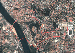 Caminhada 5 km: Largo da Porta Férrea, R. Larga, Praça Dom Dinis, Calçada Martins d Freitas, Alameda Dr. Júlio Henriques, Largo Sua Santidade João Paulo II, Alameda Dr. Júlio Henriques, R. Combatentes da Grande Guerra, R. General Humberto Delgado, R. Dom Manuel I, R. Estádio, Praça São José, R. Combatentes da Grande Guerra, Rua do Brasil, Av. Cónego Urbano Duarte, Viaduto infra Av. Cónego Urbano Duarte (acesso sentido inverso ao trânsito à Av. da Lousã), Av. da Lousã, Parque de Coimbra, Av. Inês de Castro (saída do parque junto à entrada para a Rotunda de acesso à Ponte Santa Clara), Ponte Santa Clara, Av. Emídio Navarro.