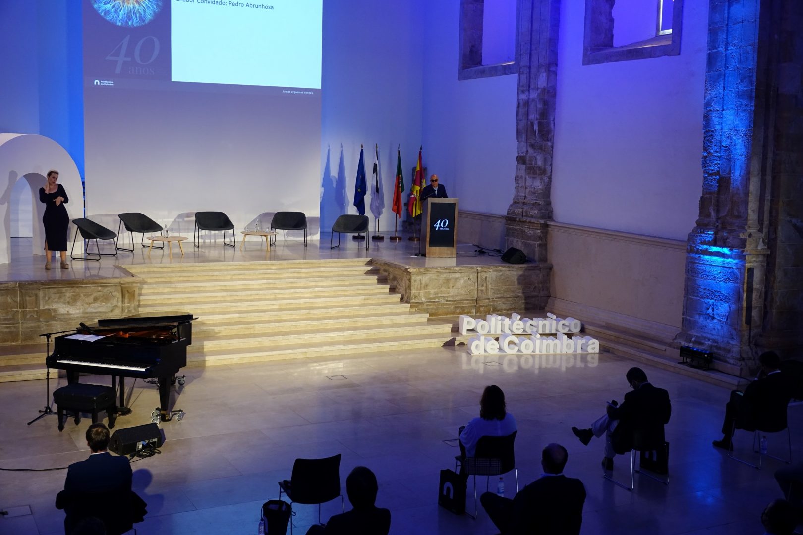 A cerimónia do Dia do Politécnico e de encerramento das comemorações dos 40 anos do IPC contou também com a participação do ministro da Ciência, Tecnologia e Ensino Superior, Manuel Heitor, a presidente do Conselho Geral do IPC, Filomena Girão, o representante das Associações de Estudantes do Politécnico de Coimbra, Pedro Fadiga, e com o músico Pedro Abrunhosa, que foi o orador convidado da conferência “O Princípio do Futuro – Informação e Formação para a Ação”.