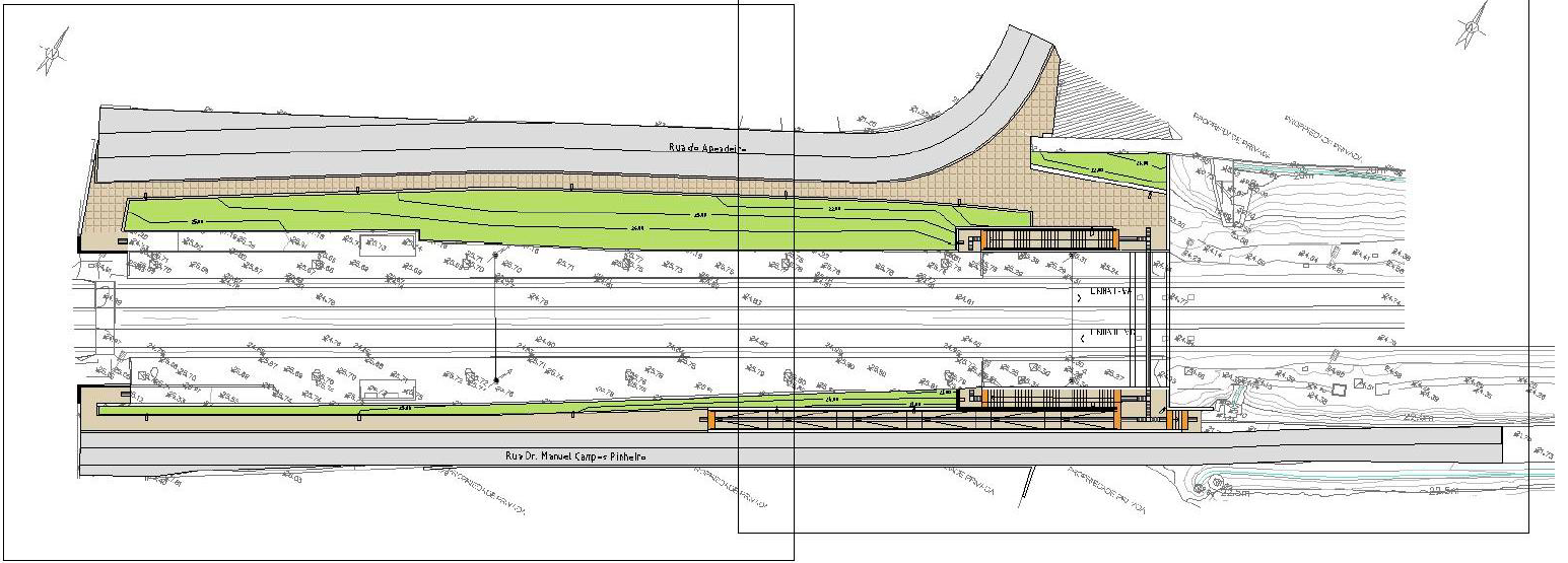 Esta solução implica o reperfilamento da Rua do Apeadeiro, a norte, o reperfilamento e o rebaixamento da Rua Dr. Manuel Campos Pinheiro, a sul. É ainda proposta a definição de passeios nessas vias e a elaboração de faixas verdes de transição entre os muros tardoz das plataformas de passageiros e esses passeios agora propostos, de modo a garantir a segurança estrutural dos muros existentes. No passeio da Rua do Apeadeiro, que vai desde a entrada/saída da passagem desnivelada até à atual entrada no apeadeiro, é necessária a construção de rampas de forma a cumprir a legislação aplicável relativa às acessibilidades. A proposta prevê ainda a demolição do atual atravessamento e a vedação da linha nesse local.
