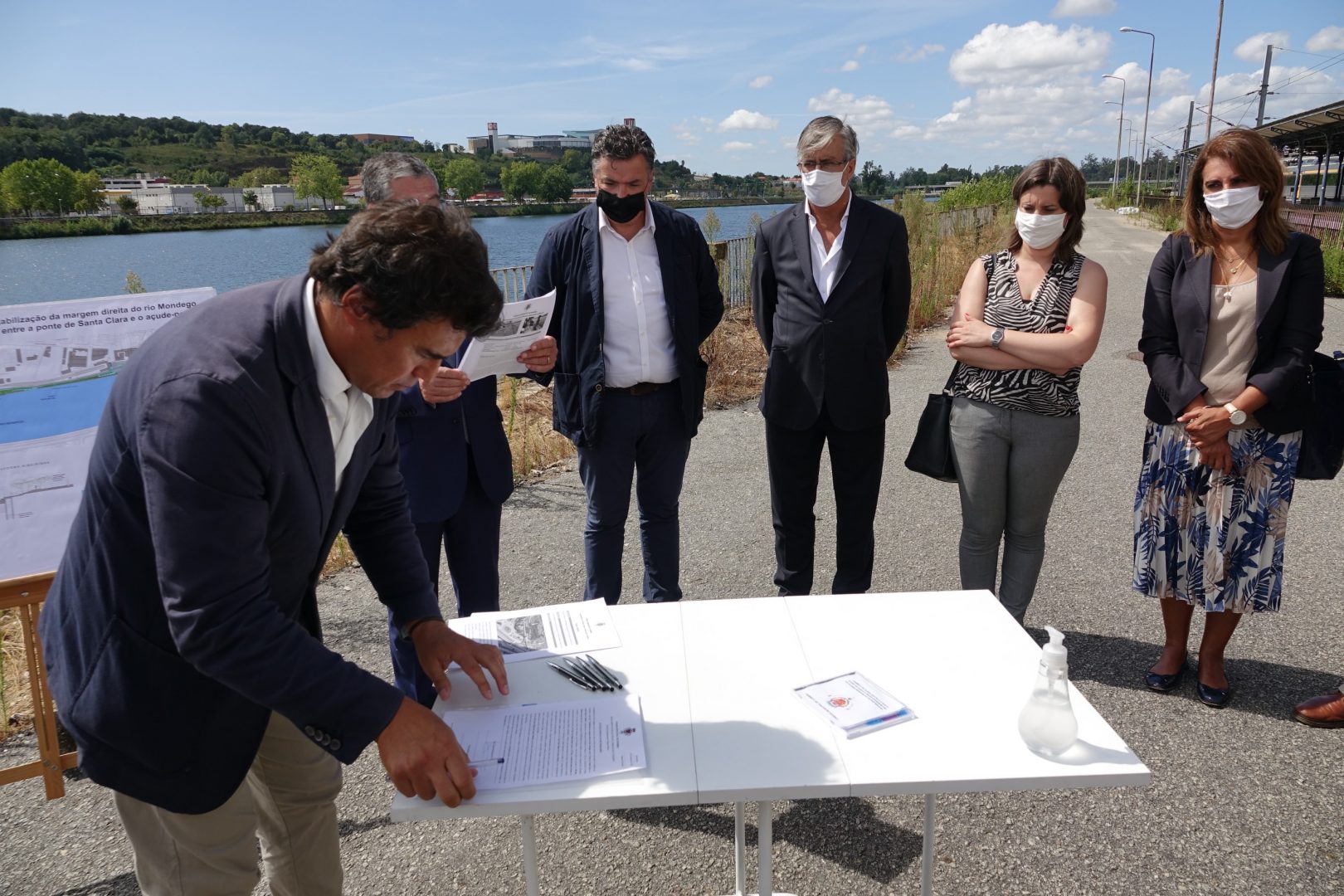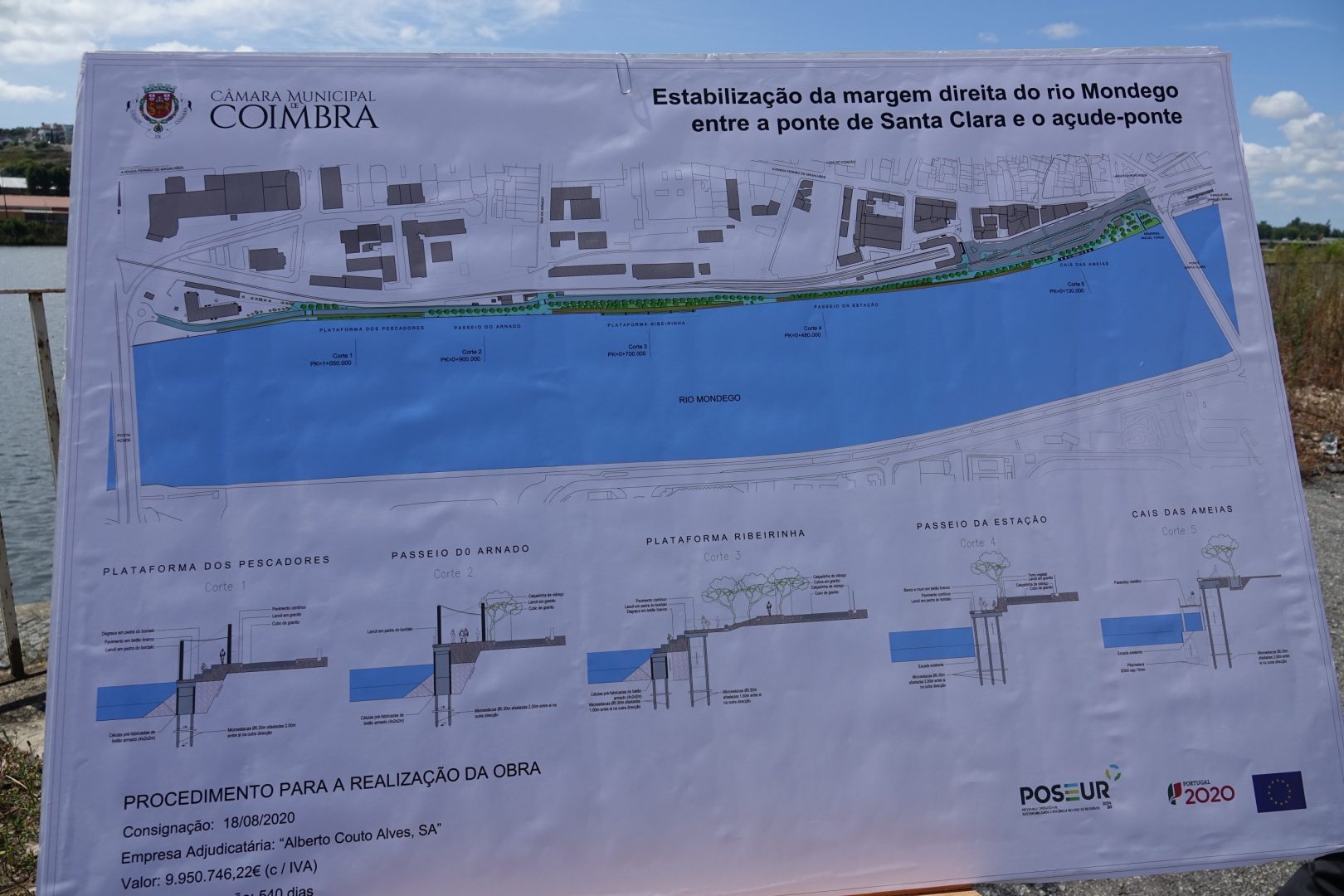 Arranca hoje mais uma obra na zona ribeirinha de Coimbra, esta que prevê a execução dos muros de contenção na margem direita do Mondego e a requalificação das avenidas Cidade de Aeminium e Emídio Navarro nas faixas confinantes com o rio, incluindo trabalhos de terraplenagem e pavimentação, a reformulação das redes de saneamento, eletricidade e iluminação pública e a execução de trabalhos de sinalização rodoviária e de integração paisagística. O projeto de arquitetura prevê também a definição de zonas de estar mais amplas, destinadas aos peões, e de relação com o plano de água – nomeadamente a reformulação das atuais rampas de acesso ao rio –, bem como a criação de zonas verdes, com coberto arbóreo.