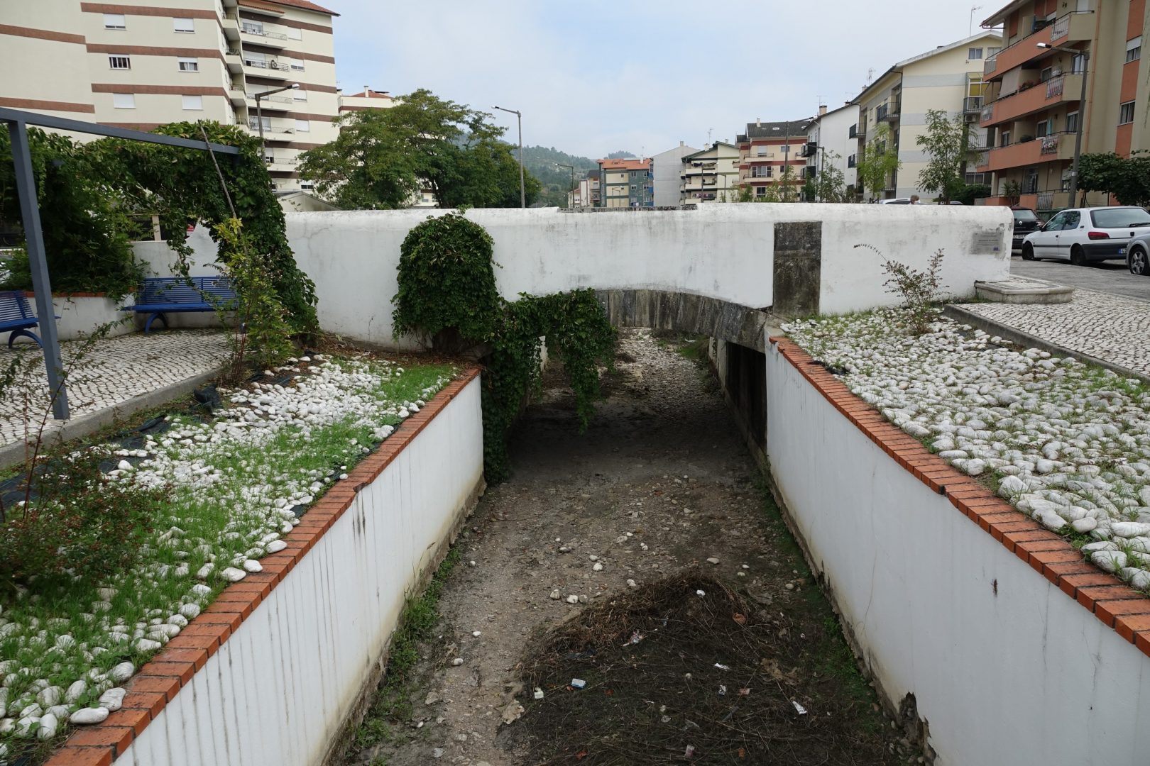 O projeto implica, ainda, a reparação das falhas na sebe existente no coroamento do talude da ribeira, de forma a criar uma barreira vegetal contínua ao longo do passeio. Já a plantação de arbustos e sementeiras proposta corresponde à do projeto original, de forma a manter-se todo o material vegetal existente. Está, ainda, previsto um novo sistema de rega automática para todas as zonas verdes.