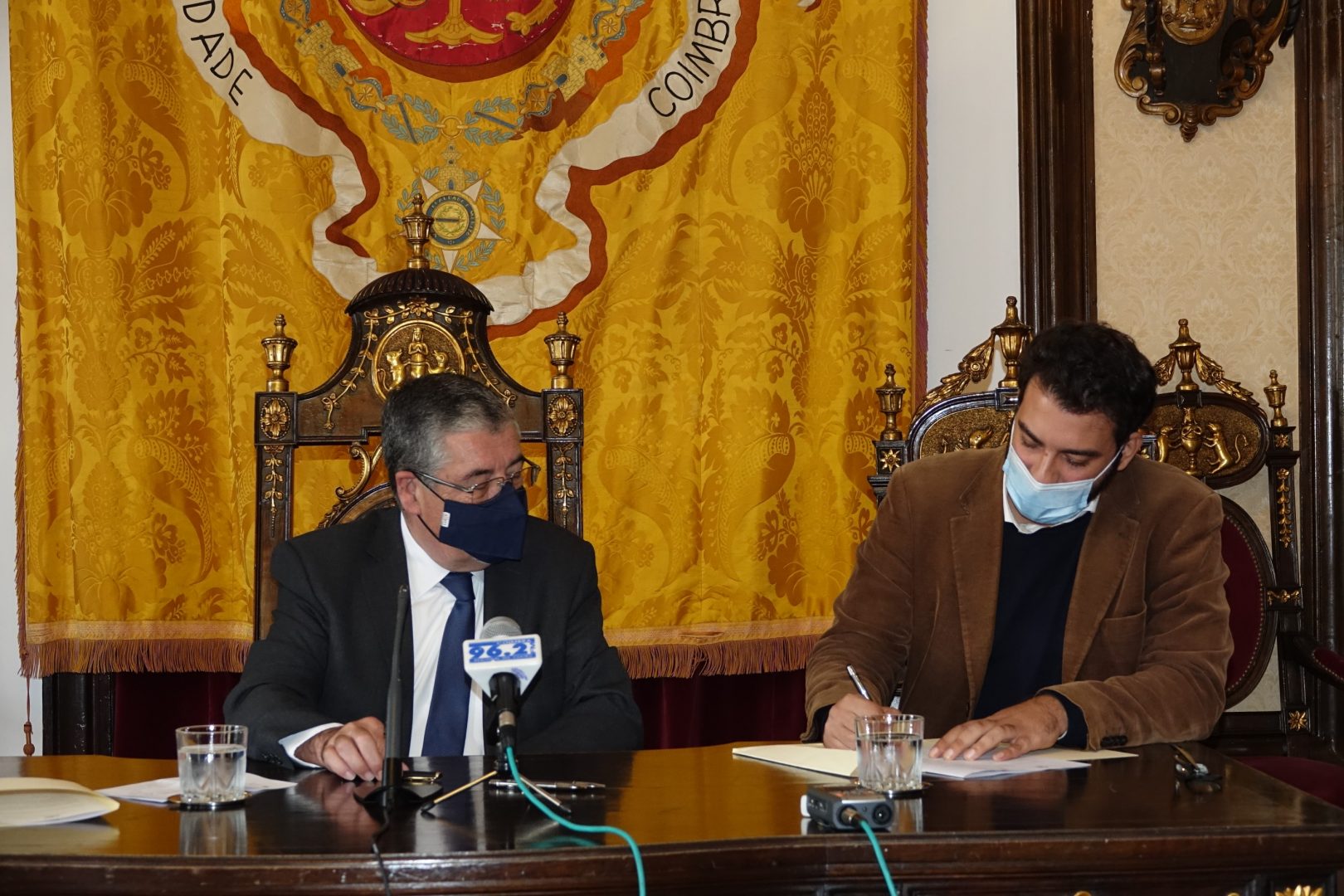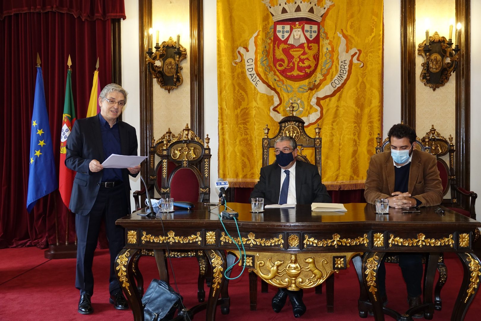 Depois do protocolo assinado, foi a vez do presidente da APDC falar. Fábio Mateus começou por agradecer ao presidente da CM Coimbra. “A meio do caminho achámos importante contactarmos as autarquias para um trabalho de proximidade. A Câmara Municipal de Coimbra foi a primeira a ouvir-nos e a assinar o protocolo”, salientou. O dirigente recordou, ainda, que esta iniciativa pretende “sensibilizar a população para a saúde mental, através de testemunhos de figuras públicas” e adiantou que o vídeo gravado com o Quimbé “é um dos 15 testemunhos que já temos disponíveis”. Fábio Mateus lembrou, ainda, que um em cada cinco portugueses, ao longo dos últimos meses, cumpriram os critérios para uma avaliação de saúde mental e reforçou que, mais perigoso do que isso é o facto de “65% das pessoas com problemas psicológicos nunca chegarem a procurar ajuda”.