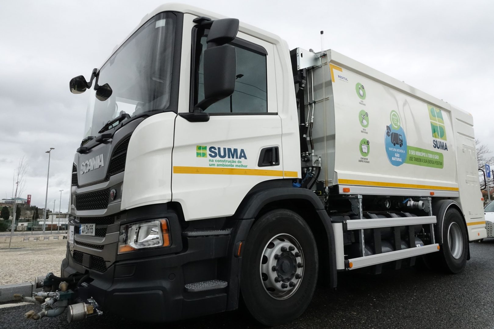 No total, são seis novas viaturas movidas a GNC que vão operar em Coimbra, de um total de 15 deste género adquiridas pela SUMA para todo o território nacional. Três são de recolha de resíduos urbanos sólidos de 15 m3, uma é de recolha de resíduos urbanos sólidos de 20 m3, uma outra de recolha de resíduos urbanos sólidos de 20 m3 equipada com grua e, por fim, uma de higienização de contentores de 8 m3.