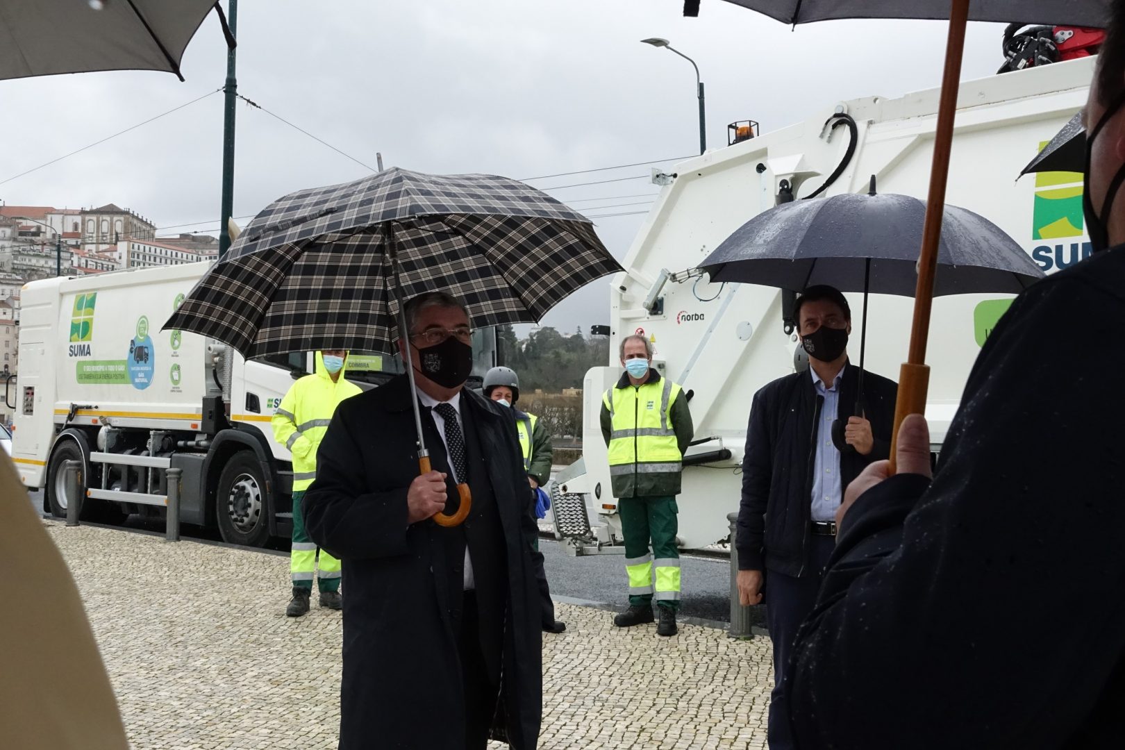 O presidente da Câmara Municipal de Coimbra, Manuel Machado, acompanhado pelo vereador do Ambiente, Carlos Cidade, e por administradores da SUMA observaram esta manhã a capacidade, as novidades e as melhorias que estas novas viaturas vão trazer à recolha de resíduos no concelho.