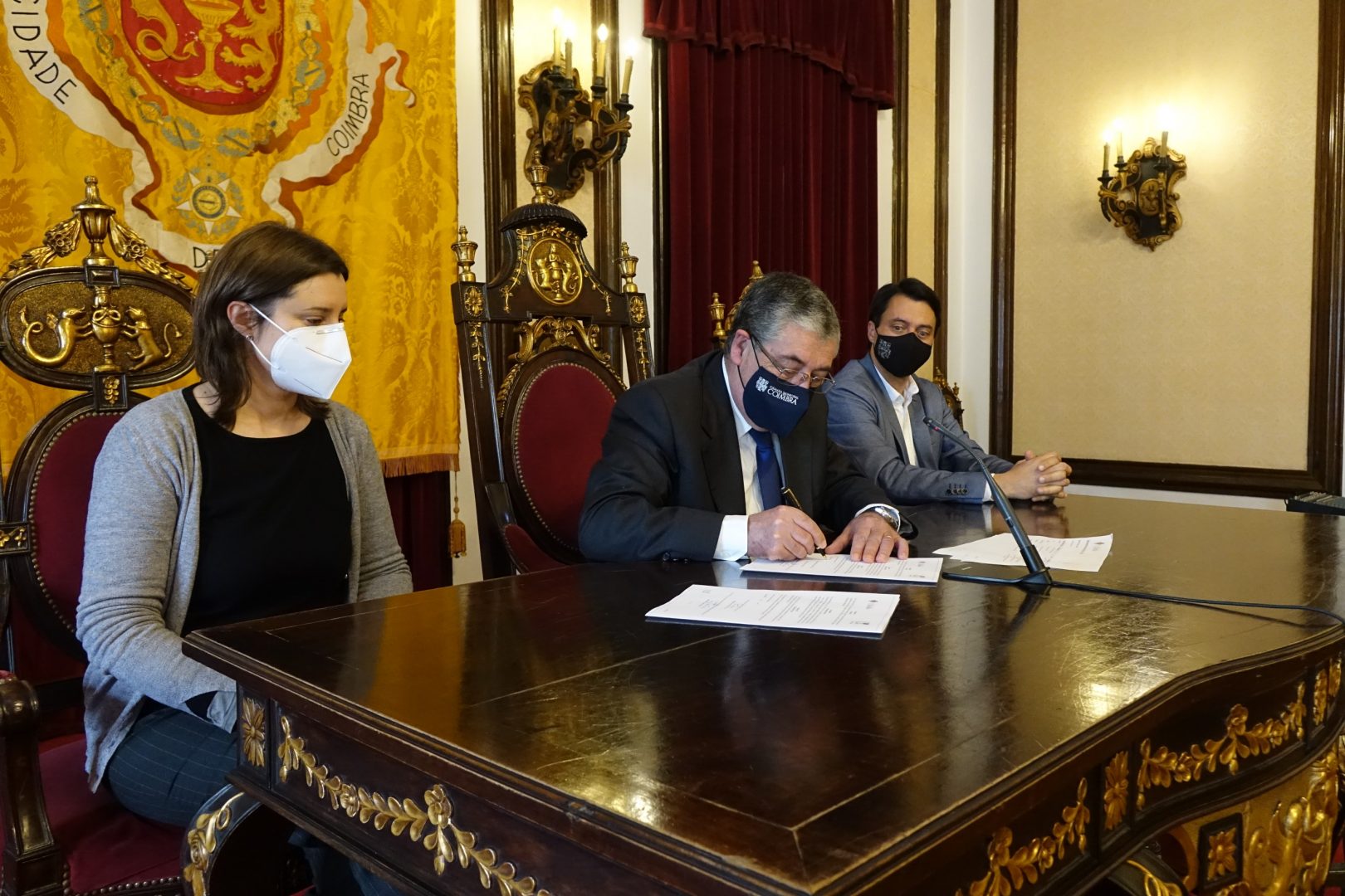 O presidente da CM Coimbra realçou, ontem, o “trabalho notável”, “muito importante e muito valioso” que as Comissões Sociais de Freguesia (CSF) e a instituições sociais têm desempenhado “durante este tempo extraordinário que estamos a viver”. “A todos os colaboradores e a todos os que estão no terreno a enfrentar o maligno e a ajudar as pessoas: o meu agradecimento sincero”, afirmou Manuel Machado, ladeado pela vereadora Carina Gomes e pelo diretor do departamento de Desenvolvimento Social, Saúde e Ambiente, Pedro Carrana, durante a assinatura de 18 protocolos que vão reforçar o investimento no FMES, criado em 2015.