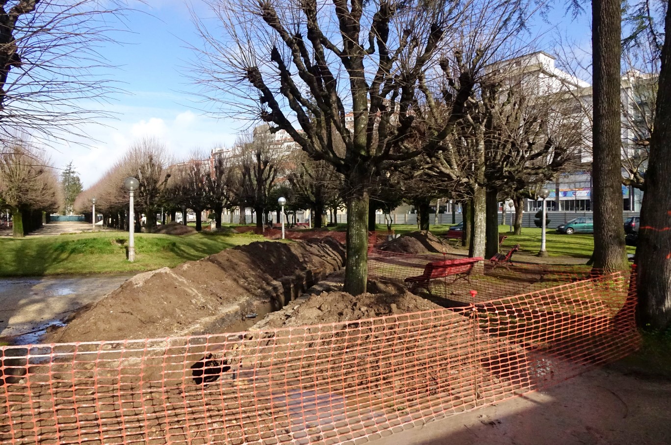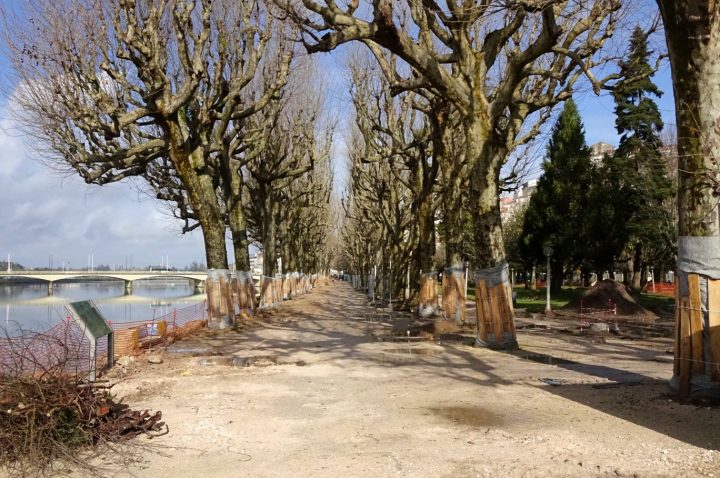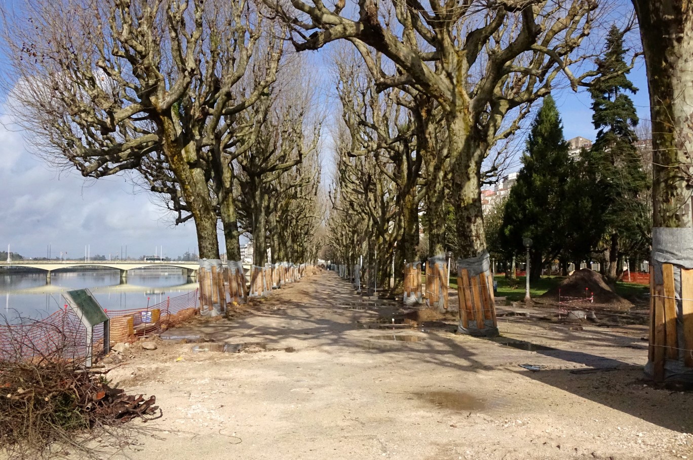 Logo em sede de projeto, e com base numa avaliação do estado fitossanitário das árvores existentes no parque elaborada por uma empresa especialista em arboricultura urbana, foi prevista a remoção de 33 unidades. A decisão, segundo a avaliação dos especialistas, reflete a fraca estabilidade ou o fraco vigor vegetativo das árvores, o que coloca em risco a segurança dos visitantes do parque dada a probabilidade de rotura de troncos de dimensão considerável. As árvores que serão removidas no decorrer da empreitada incluem cinco tílias do alinhamento central, um plátano da alameda do rio, além de alguns outros exemplares de espécies variadas existentes nos canteiros relvados. As patologias presentes em alguns destes exemplares foram pioradas pela tempestade Leslie e outros eventos atmosféricos posteriores que deixaram os mesmos sem quaisquer condições de estabilidade. Já o estado de decaimento e detioração de quadro tílias foi verificado aquando da poda de manutenção efetuada recentemente, não deixando dúvidas aos especialistas acerca da urgência da sua remoção, estando em causa a segurança das pessoas. Estes exemplares já eram acompanhados desde 2017, tendo apresentado alterações estruturais irreversíveis à sua estabilidade, podendo daí advir risco elevado de rutura, razão que leva à sua remoção.