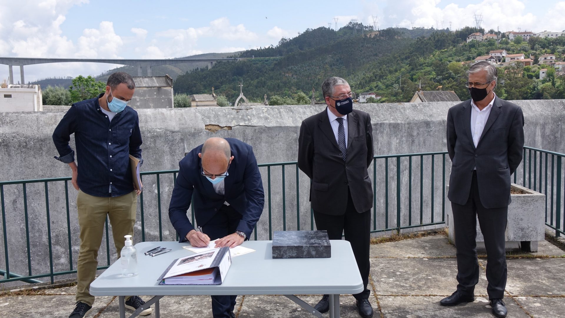 O presidente da CM Coimbra, Manuel Machado, o presidente da Junta de Freguesia de Ceira, Fernando Santos e o vereador Carlos Cidade participaram ao final da manhã de hoje na consignação da empreitada de ampliação do cemitério de Ceira.