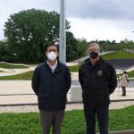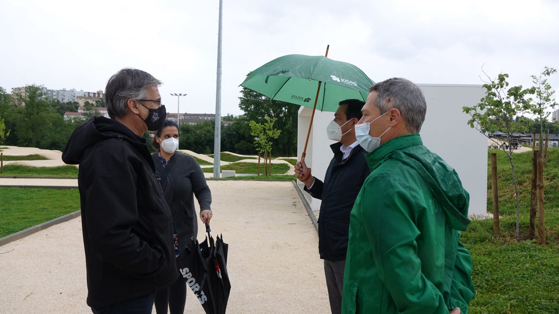 A envolvente à pista também foi intervencionada, existindo agora um percurso pedonal contínuo desde a estação ferroviária até à zona de bosquete/parque de merendas existente mais a norte.