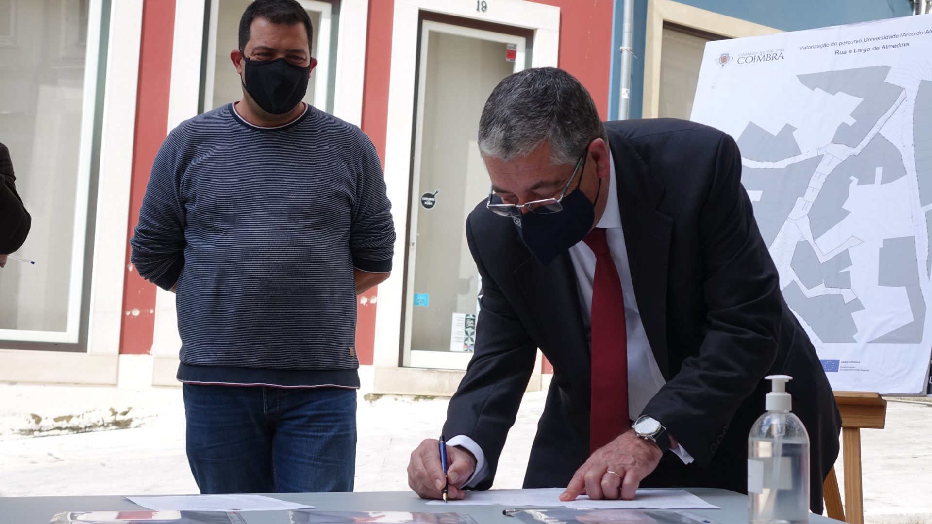 A Câmara de Coimbra continua a valorizar o espaço público da zona histórica através da requalificação urbana. Esta tarde, foi consignada mais uma obra de requalificação da Alta da cidade, que se insere no percurso Universidade de Coimbra/Arco de Almedina, onde agora está instalado também o Centro de Arte Contemporânea de Coimbra.