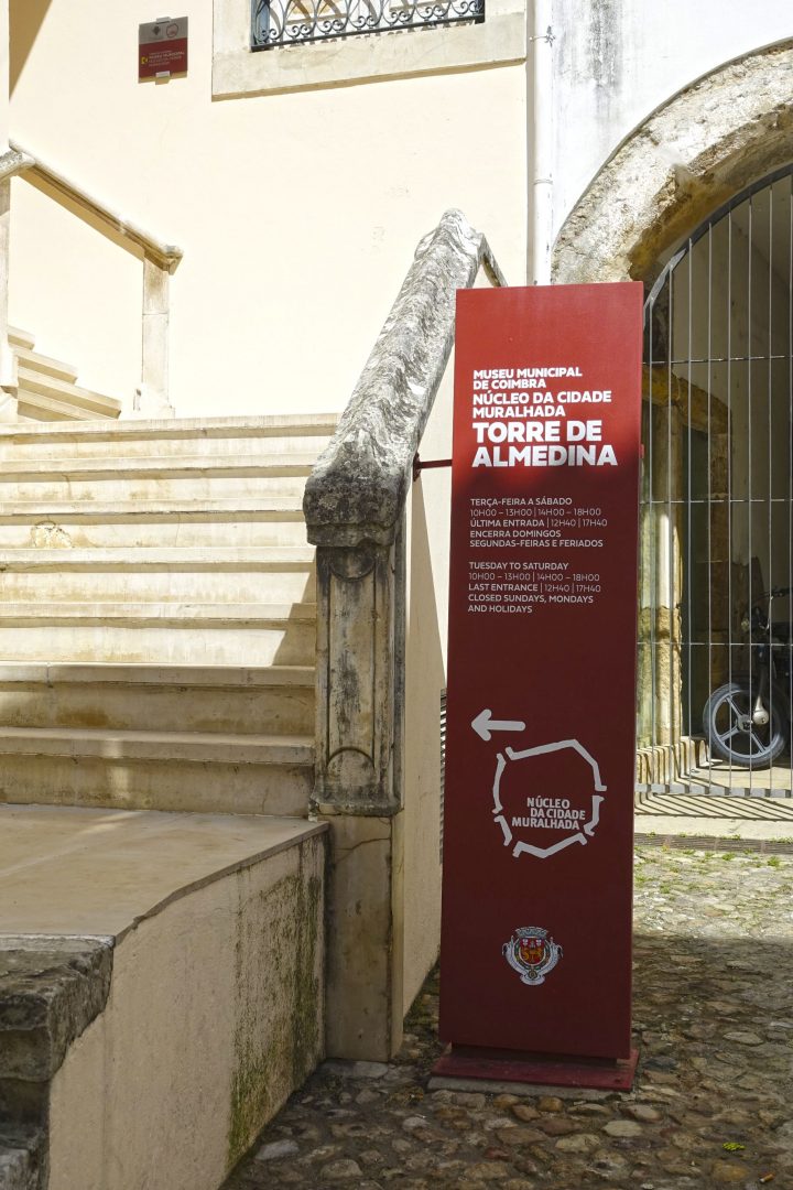 O Núcleo da Cidade Muralhada, na Torre de Almedina, está aberto ao público de terça a sexta-feira, das 10h00 às 13h00 e das 14h00 às 18h00, e sábados das 10h00 às 13h00, enquanto vigorar em território nacional a obrigação de recolhimento aos sábados, domingos e feriados a partir das 13h00.