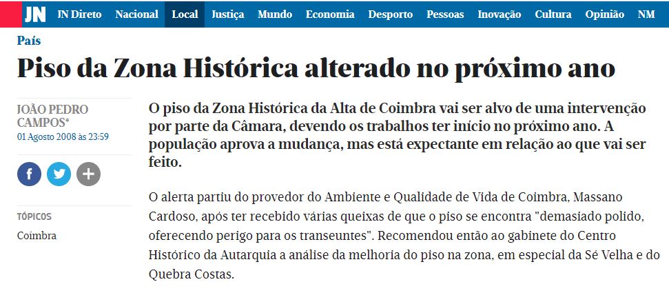 O Programa Preliminar desta intervenção foi aprovado, por unanimidade, na reunião da Câmara Municipal de Coimbra de 05/12/2011, no qual já se previa a substituição do material atual por um mais resistente. Pode ler aqui a deliberação de 2011.