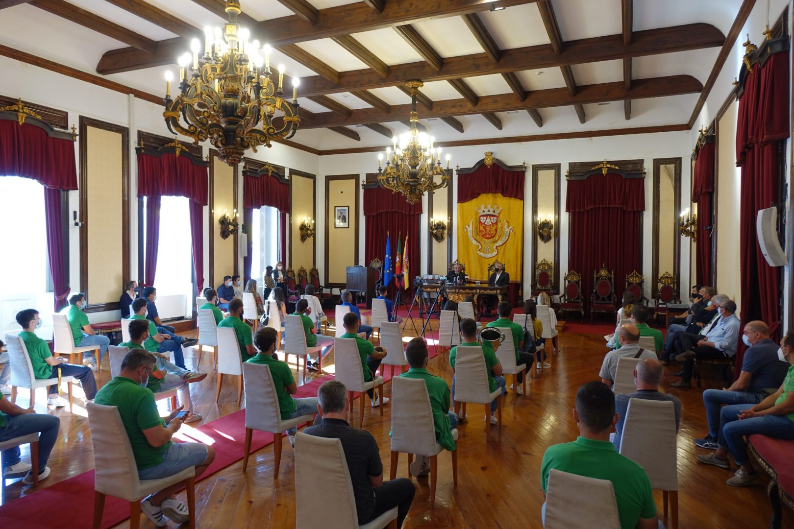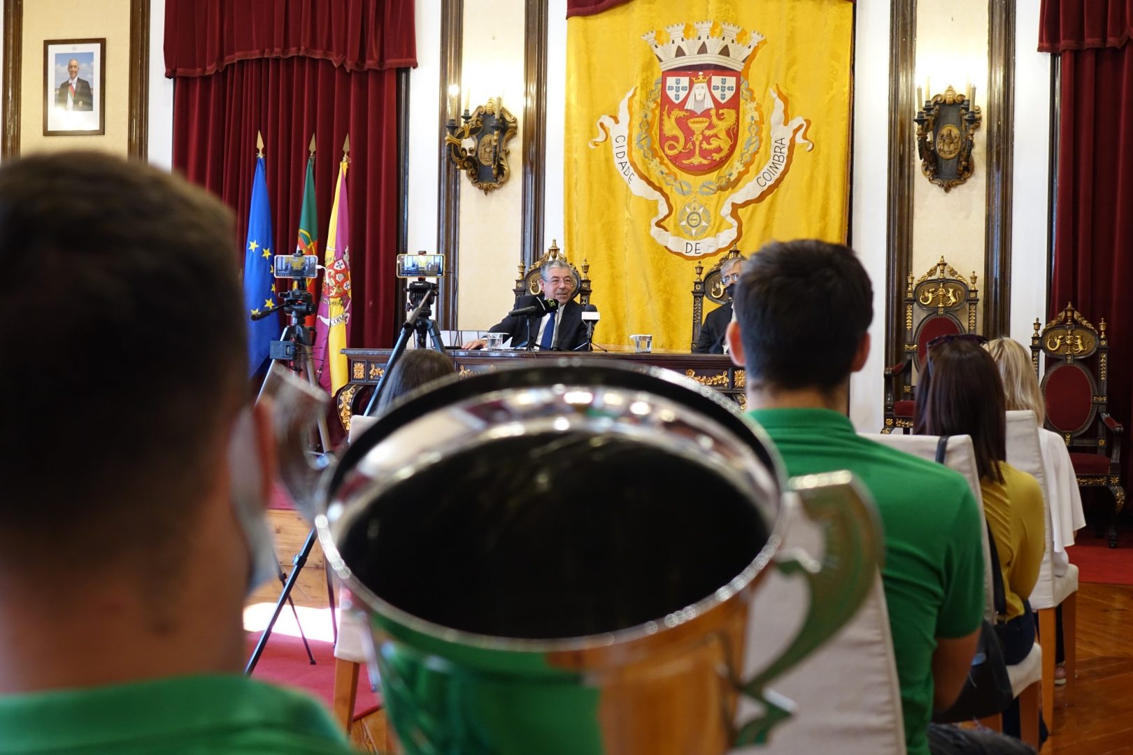 Futebol, atletismo e ginástica, foram estas as modalidades que estiveram em destaque, ontem, na sessão que a CM Coimbra organizou para homenagear os atletas e as equipas do concelho que obtiveram resultados ao mais alto nível competitivo. A sessão decorreu no Salão Nobre dos Paços do Concelho e a sala acabou por lotar, tendo em conta a limitação prevista de acordo com as regras e orientações da Direção-Geral de Saúde.