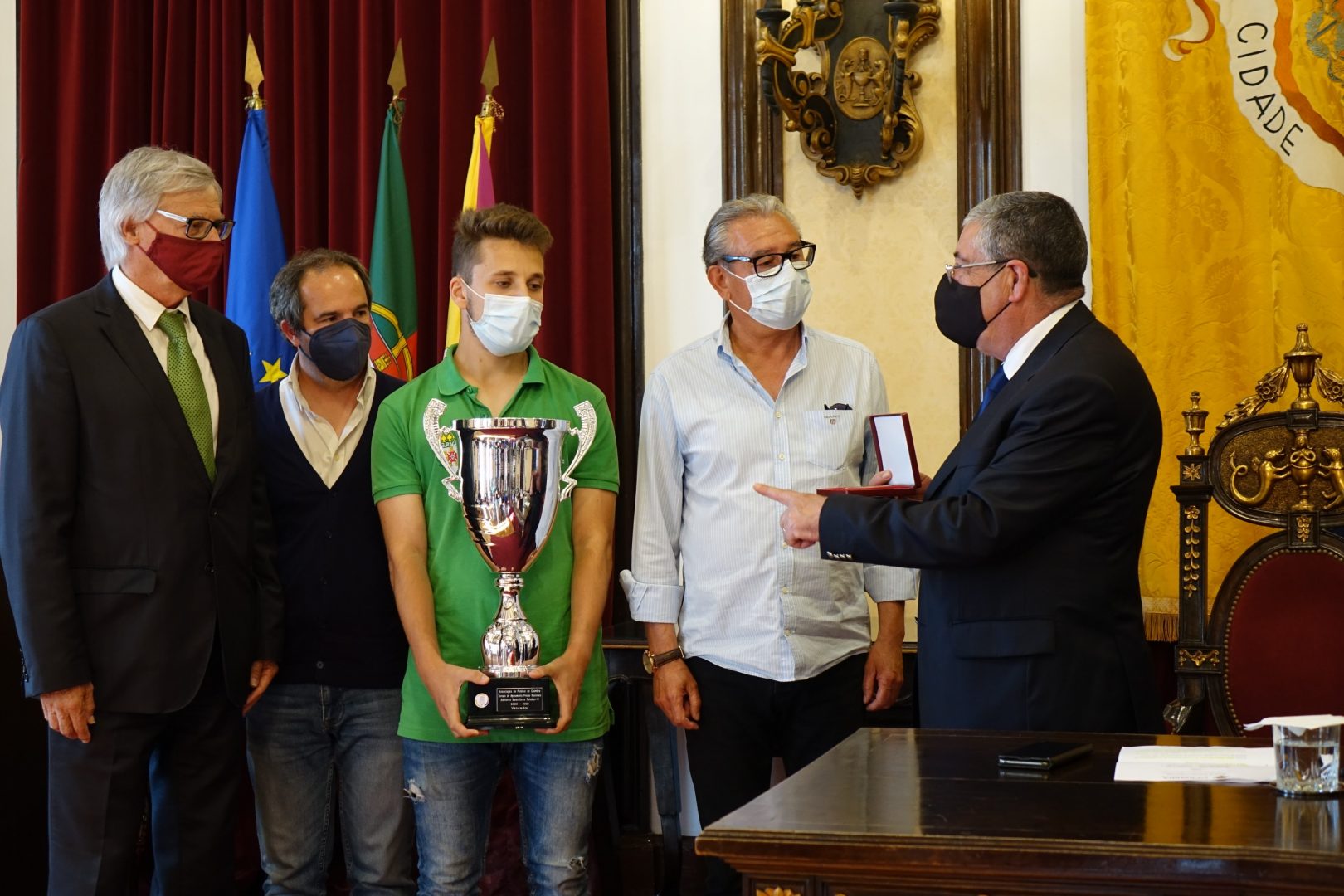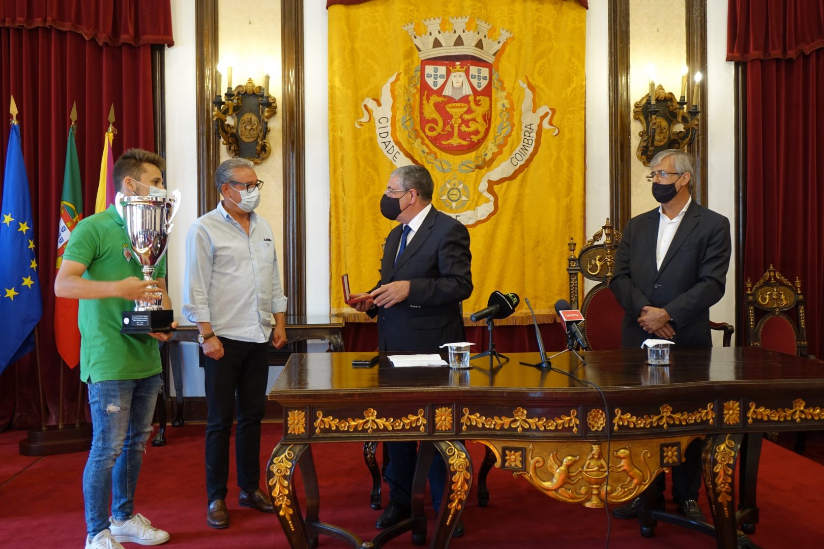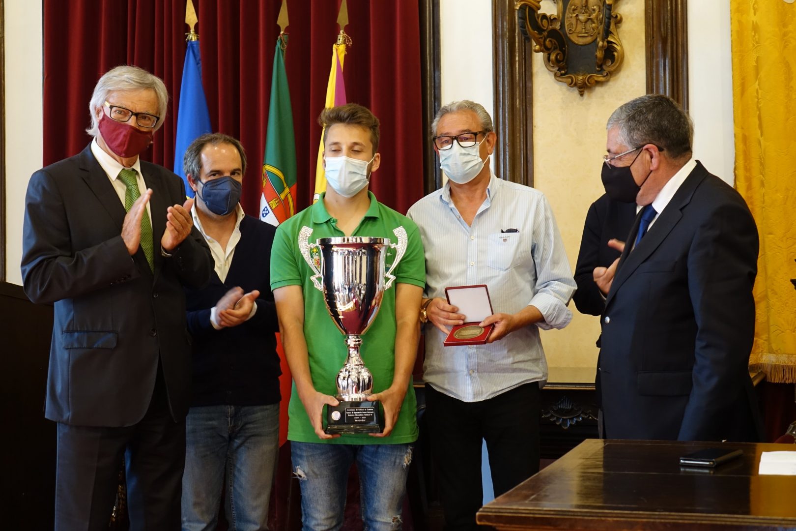 “São todos merecedores desta felicitação. Cada um de vós deu um contributo enorme para, num tempo especial, de pandemia COVID-19, podermos passar a mensagem aos nossos concidadãos de encorajamento, para resistirmos, com cuidado, mas a competirmos de forma sadia e a merecer, justamente, os prémios, as taças, os galardões e o reconhecimento”, referiu o presidente da CM Coimbra, durante a sua intervenção.