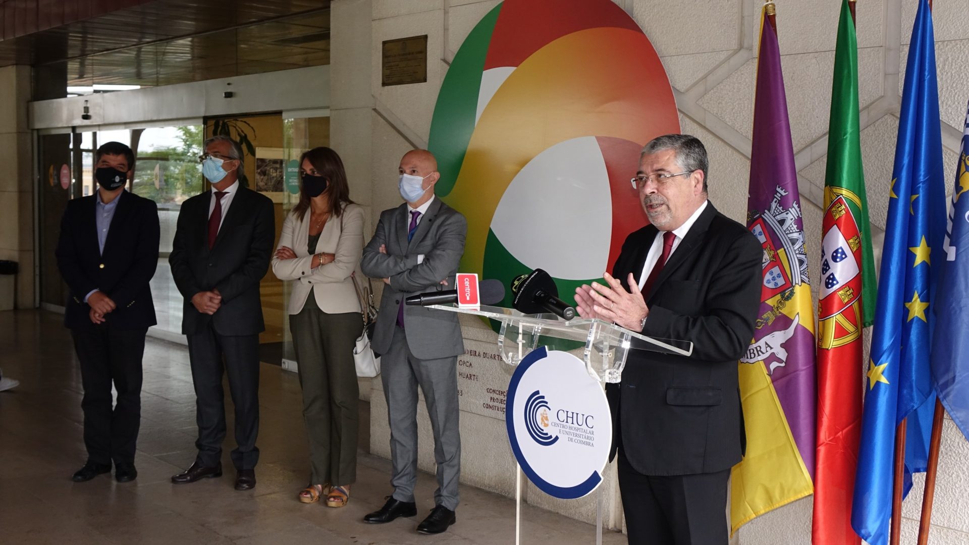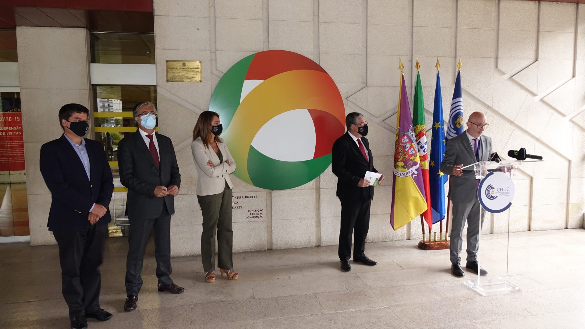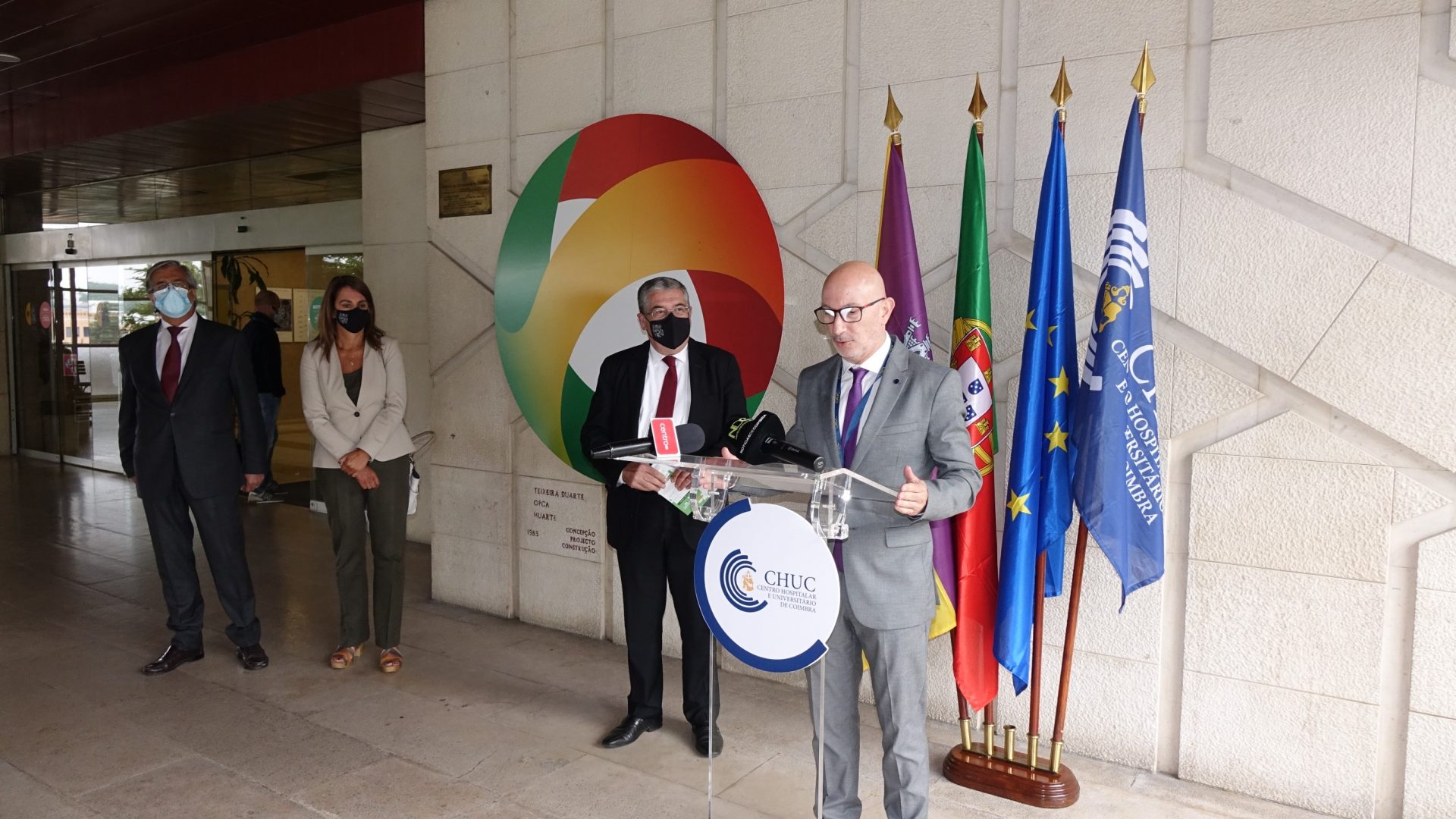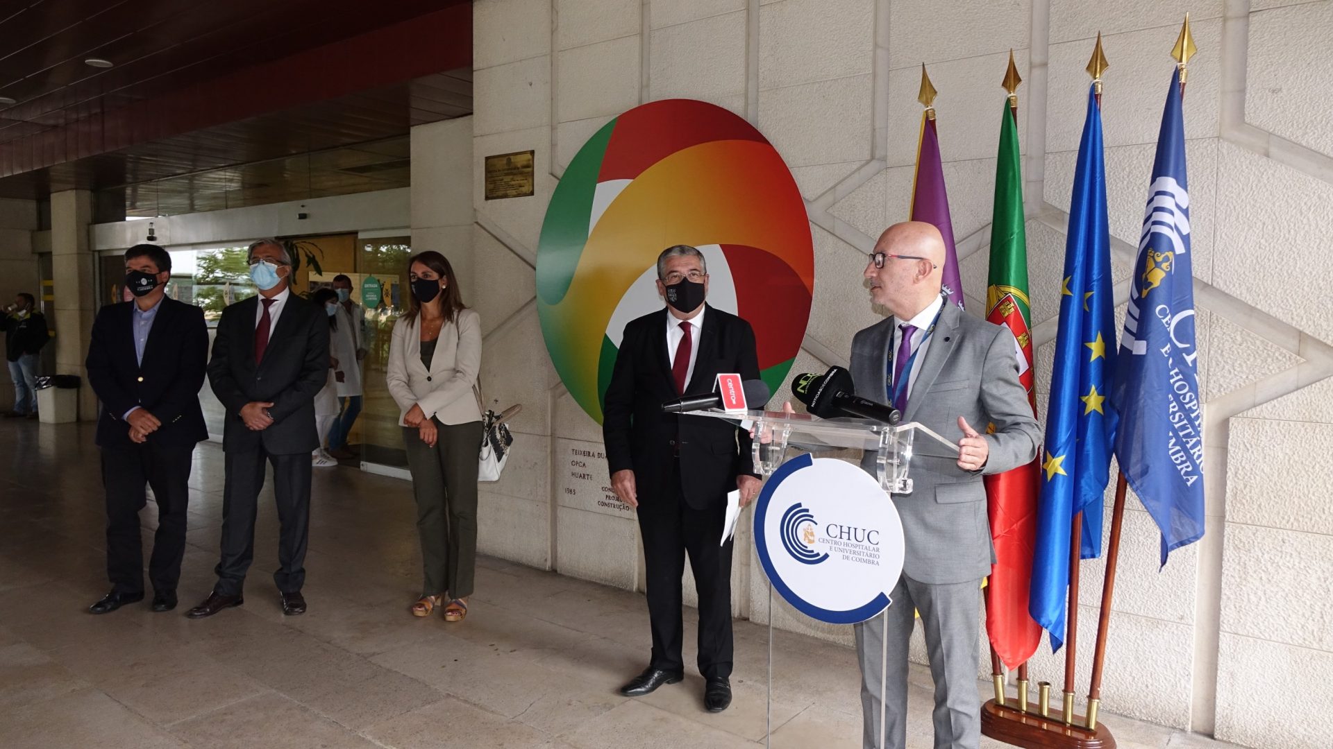 O presidente da Câmara de Coimbra, Manuel Machado, e o presidente do conselho de administração do CHUC, Carlos Santos, acompanhados pelos vereadores da CM Coimbra, Carlos Cidade e Regina Bento, apresentaram ontem a nova parceria entre as instituições para dinamização do serviço Ecovia.