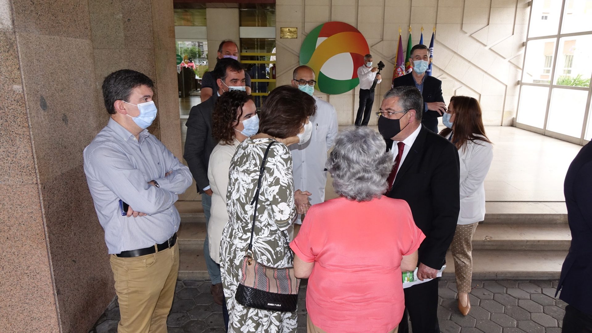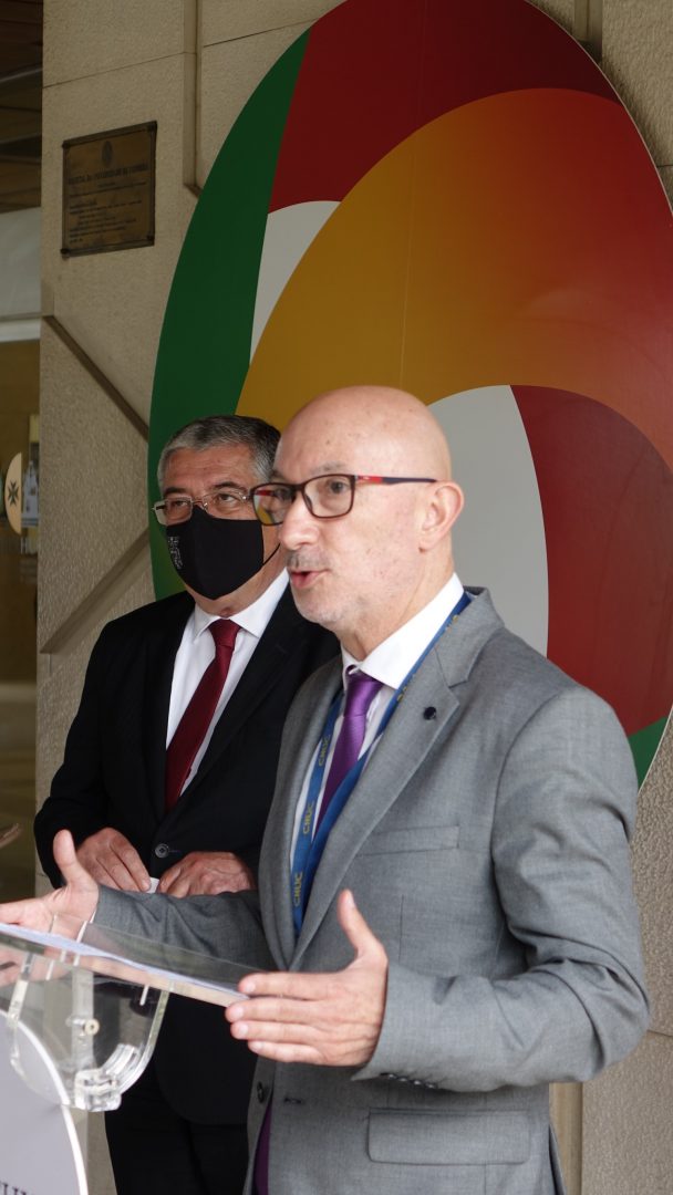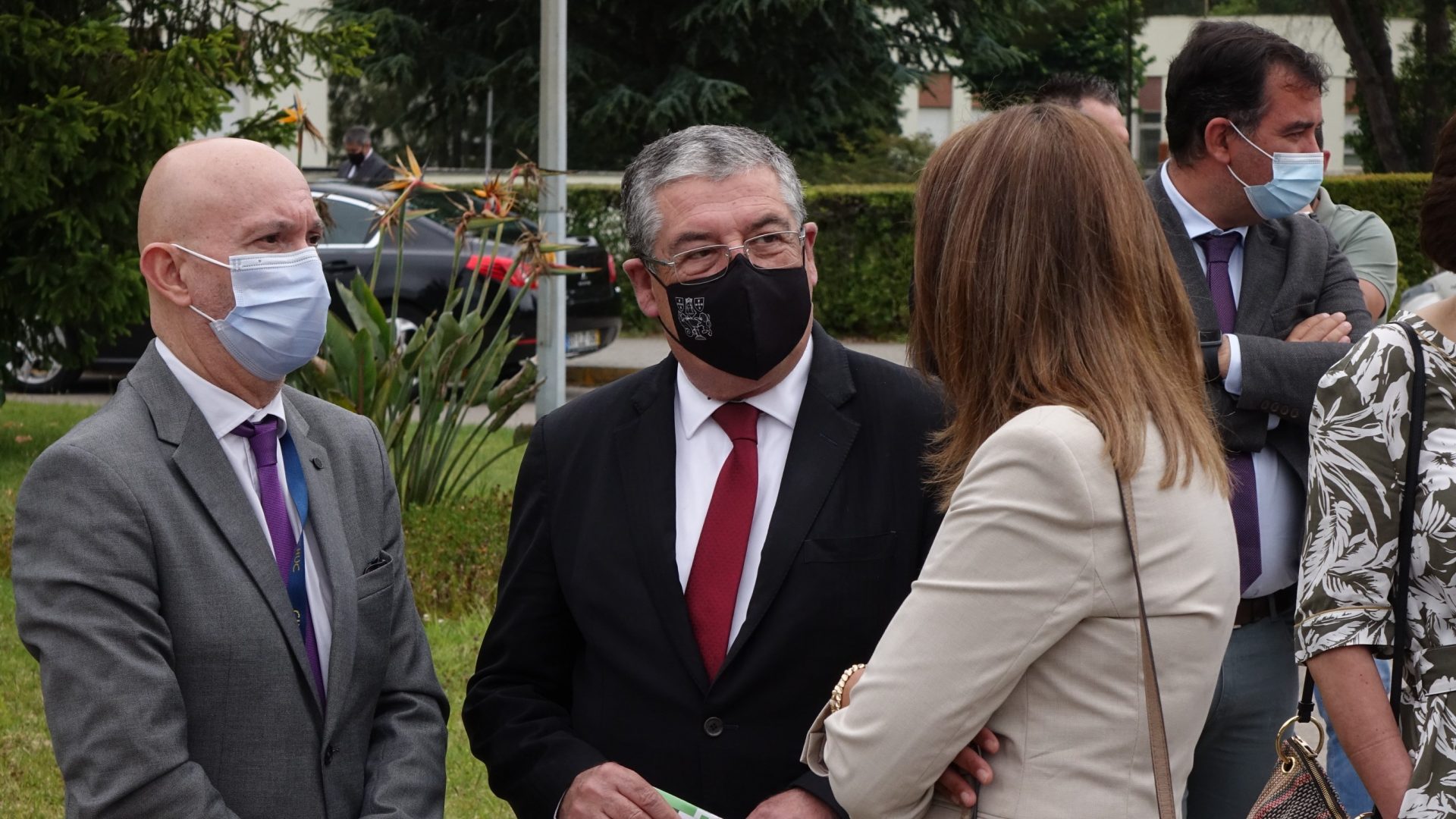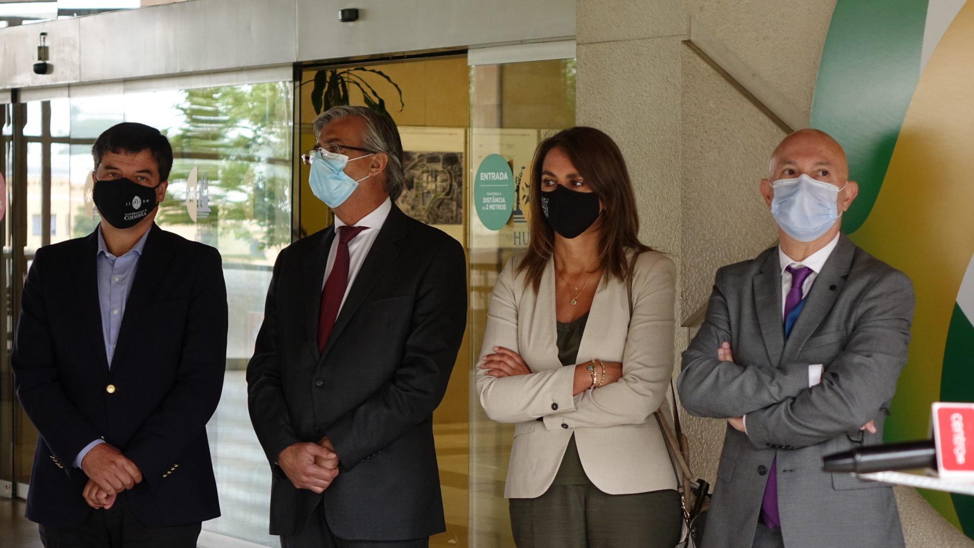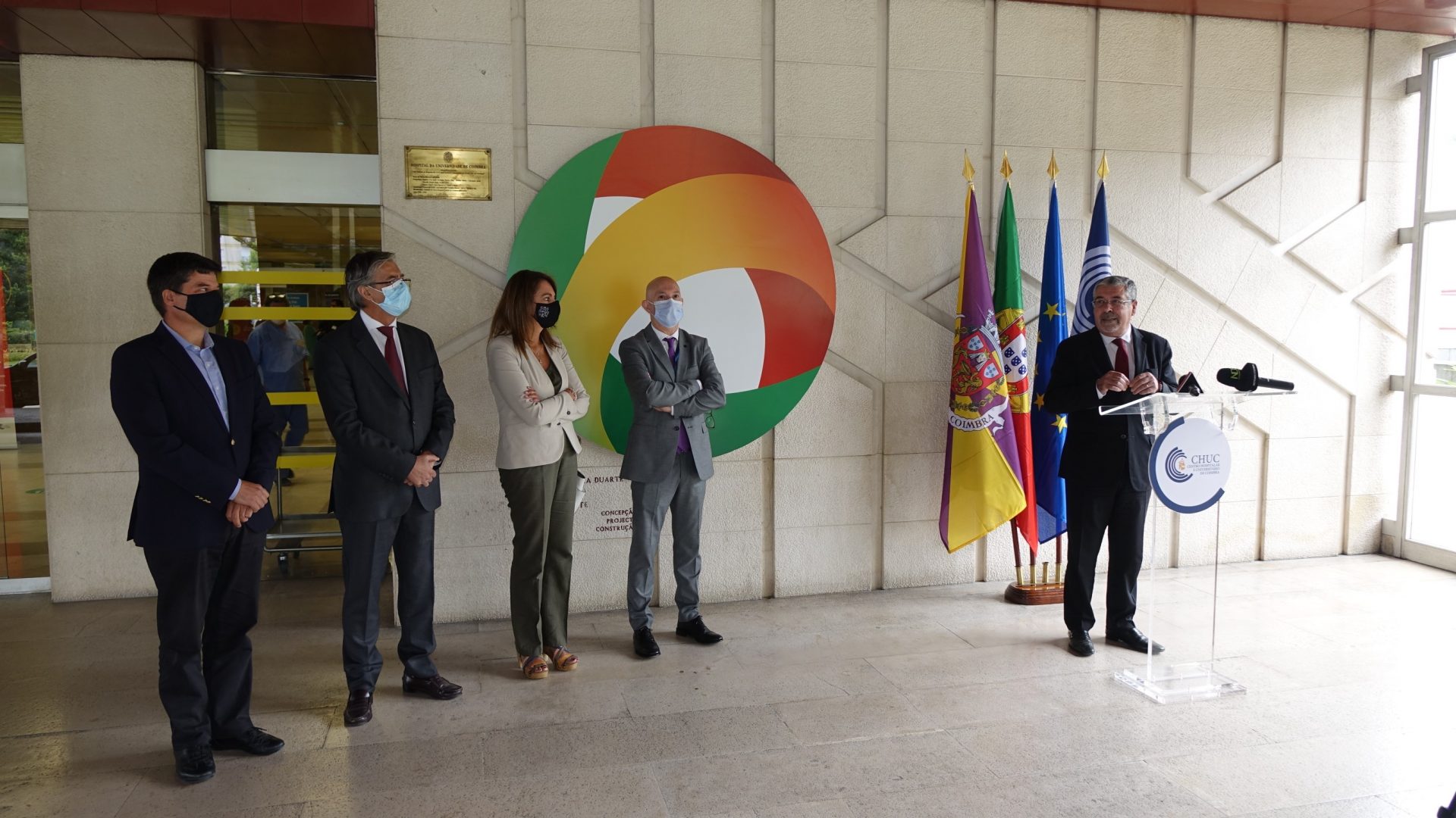 O presidente da Câmara de Coimbra, Manuel Machado, e o presidente do conselho de administração do CHUC, Carlos Santos, acompanhados pelos vereadores da CM Coimbra, Carlos Cidade e Regina Bento, apresentaram ontem a nova parceria entre as instituições para dinamização do serviço Ecovia.