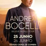 Andrea Bocelli é um tenor, compositor e produtor musical italiano, vencedor de vários prémios internacionais na área da música, como cinco BRIT Awards e três Grammys. Bocelli já gravou nove óperas completas, além de vários álbuns clássicos e populares, tendo vendido mais de 70 milhões de cópias em todo o mundo. Vai estar em Coimbra para dois concertos, na sexta-feira, dia 25 de junho, e no sábado, 26 de junho, que estão já praticamente lotados. Os bilhetes podem ser adquiridos no portal https://concertocoimbra.pt/.