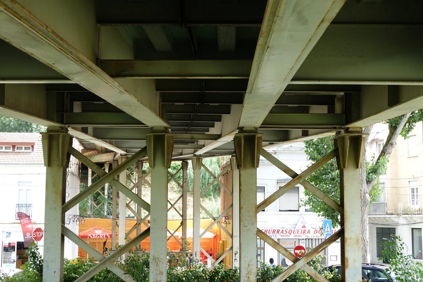 Trata-se de uma infraestrutura metálica constituída por cinco vãos, sendo o tabuleiro suportado por vigas longitudinais e pilares metálicos, com encontros em betão armado. Embora não tenham sido identificadas anomalias relevantes, a inspeção realizada permitiu detetar que o estado de conservação é mau.