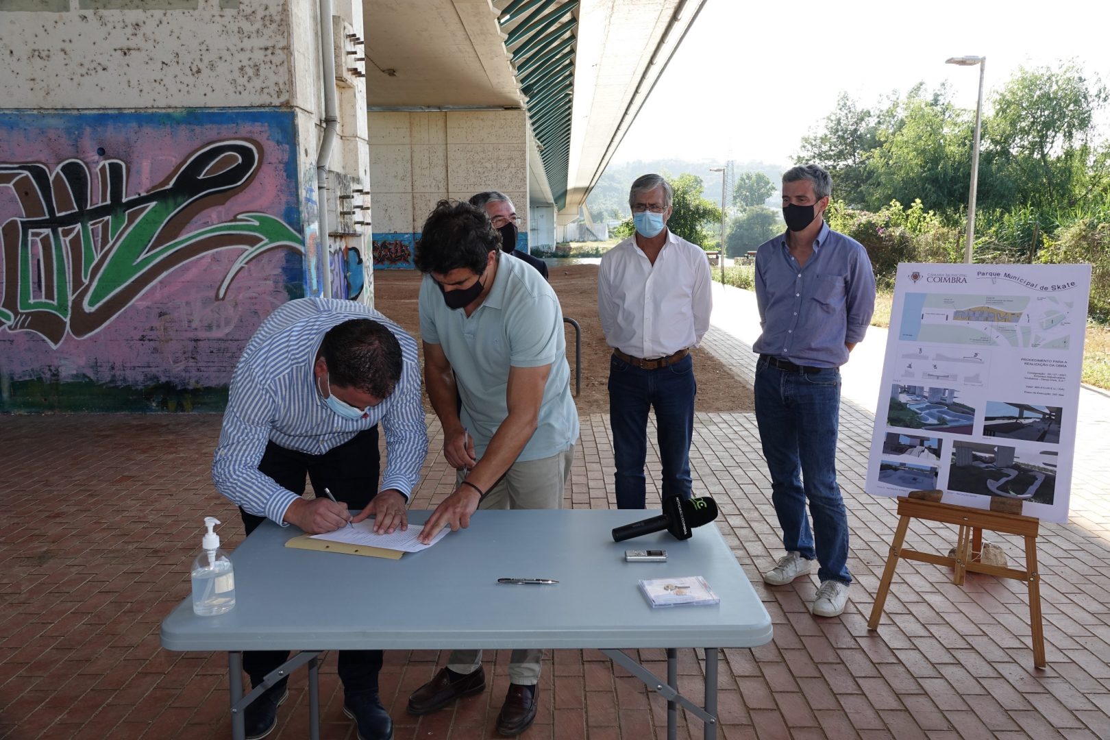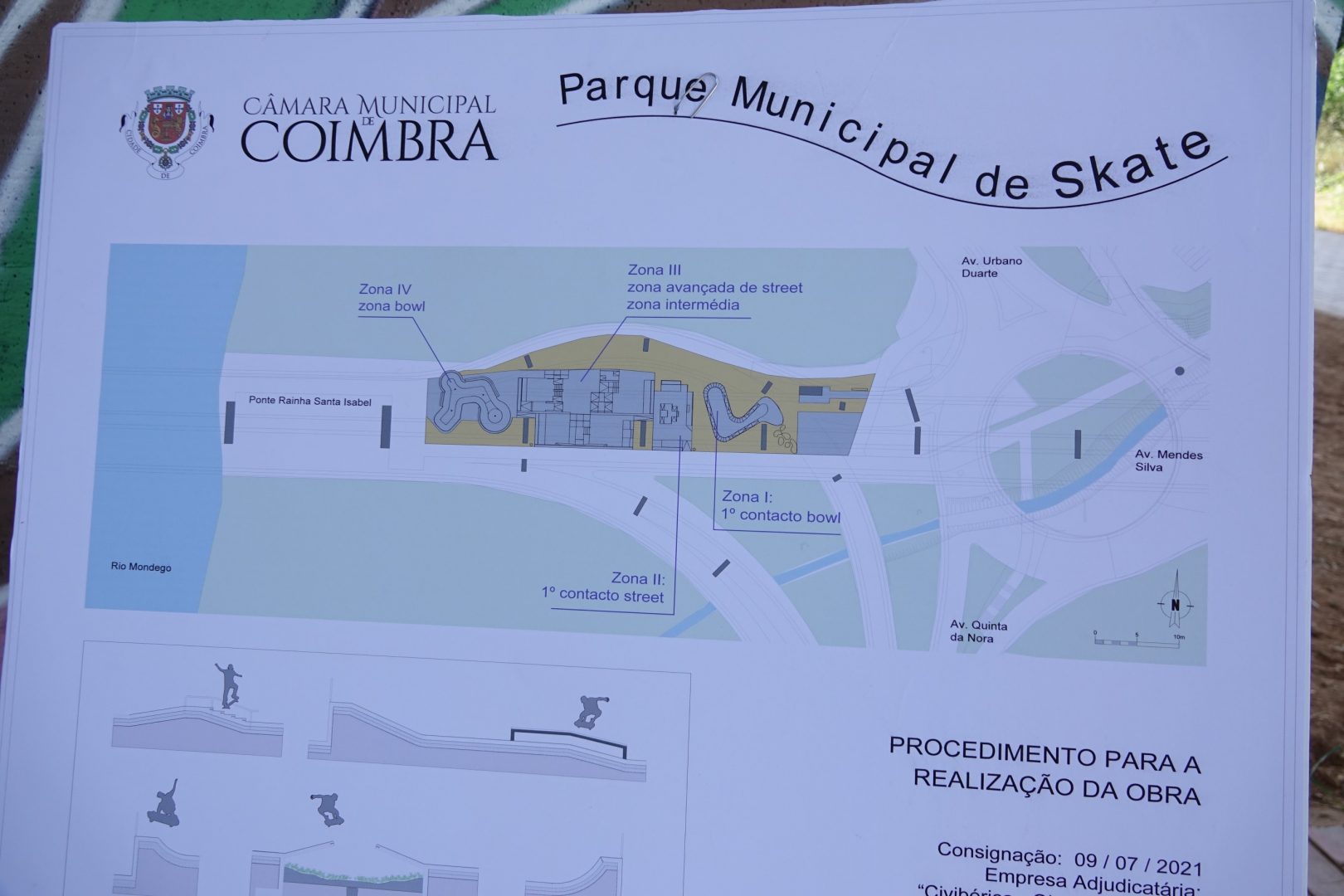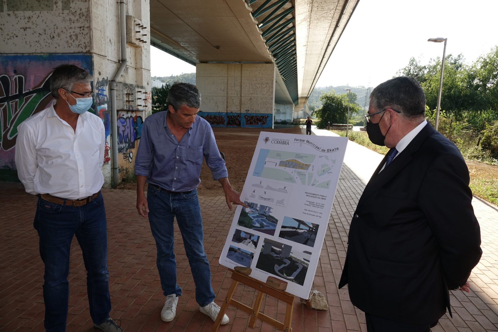 A empresa Infraestruturas de Portugal, S.A., responsável pela ponte Rainha Santa Isabel já deu parecer favorável para a sua execução, considerando que não existem impedimentos ao projeto. Uma solução que passa pela instalação de um parque de skate inovador, bem desenhado e construído com materiais duradouros e adequados à prática de modalidade, na margem direita do rio Mondego, sob a ponte.