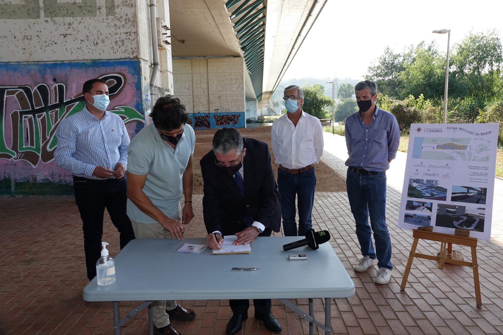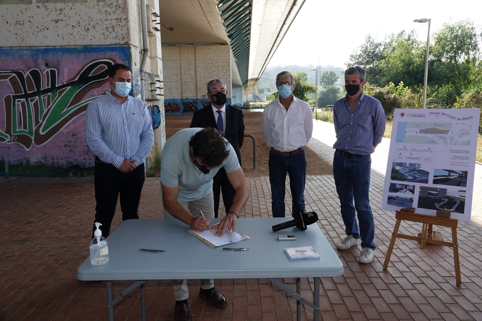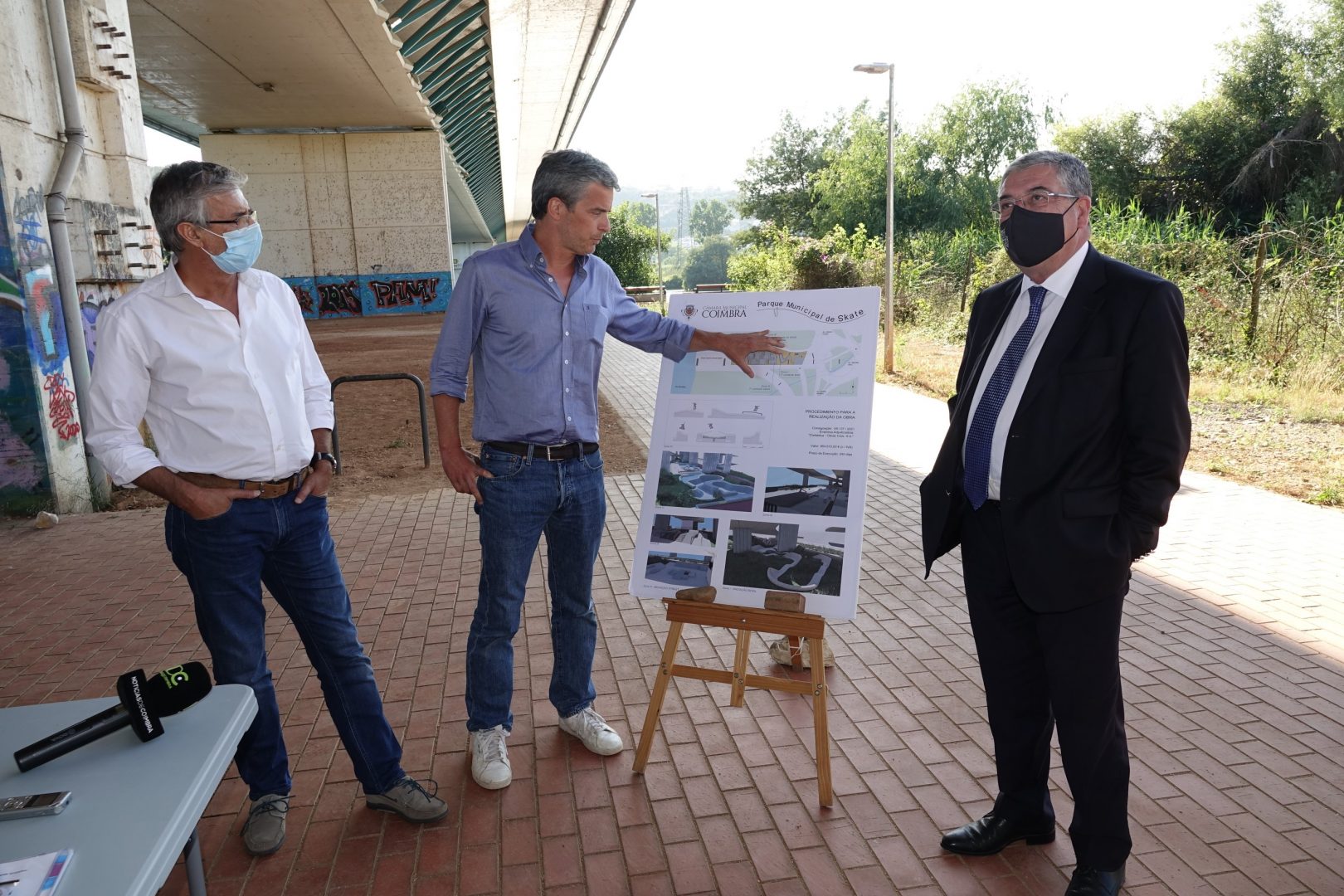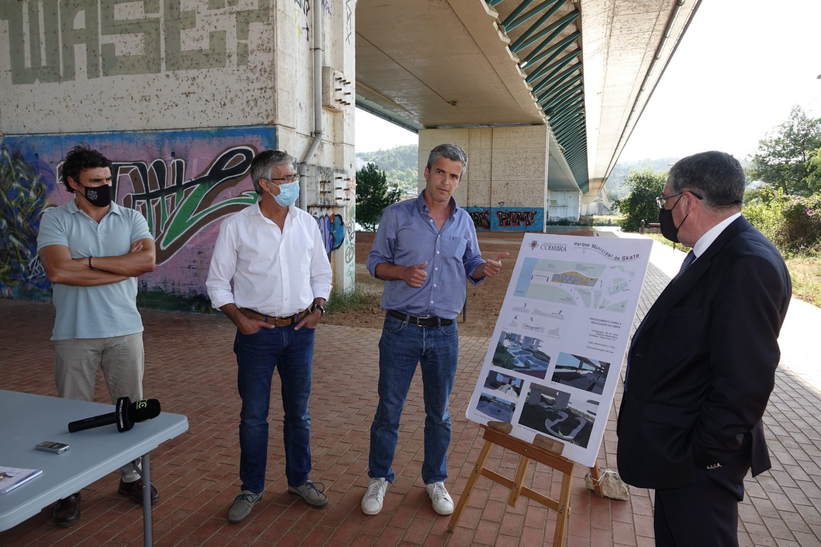 A empresa Infraestruturas de Portugal, S.A., responsável pela ponte Rainha Santa Isabel já deu parecer favorável para a sua execução, considerando que não existem impedimentos ao projeto. Uma solução que passa pela instalação de um parque de skate inovador, bem desenhado e construído com materiais duradouros e adequados à prática de modalidade, na margem direita do rio Mondego, sob a ponte.
