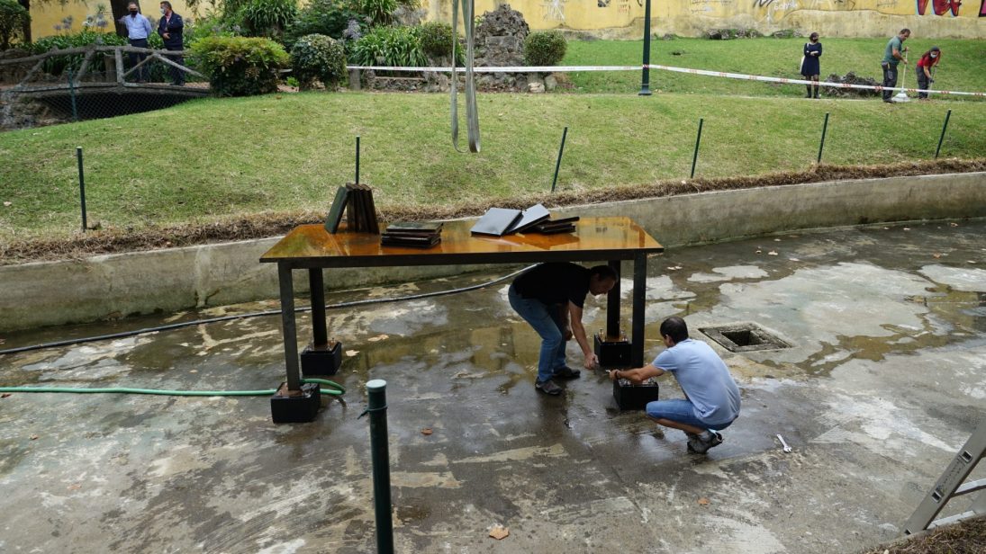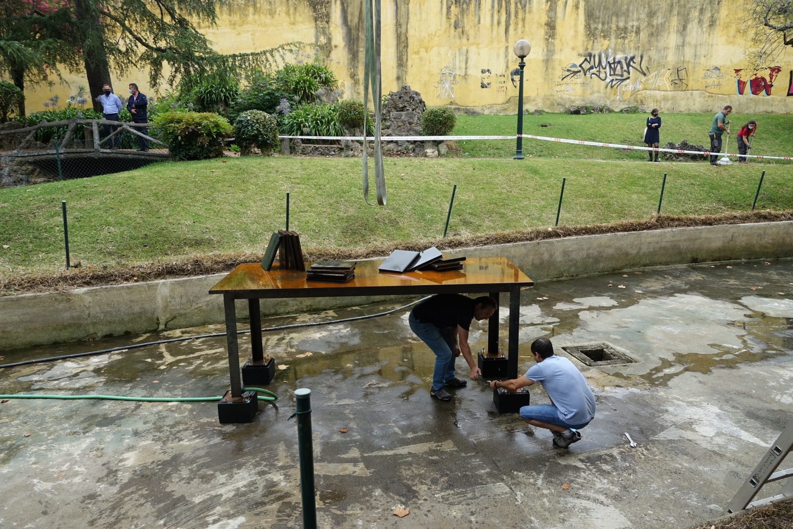 Depois de ter sido vandalizada e com o espírito de colaboração e entreajuda que já carateriza a relação entre a autarquia e Pedro Cabrita Reis, o artista demonstrou imediata disponibilidade para avaliar os danos e remover o que restou da escultura.