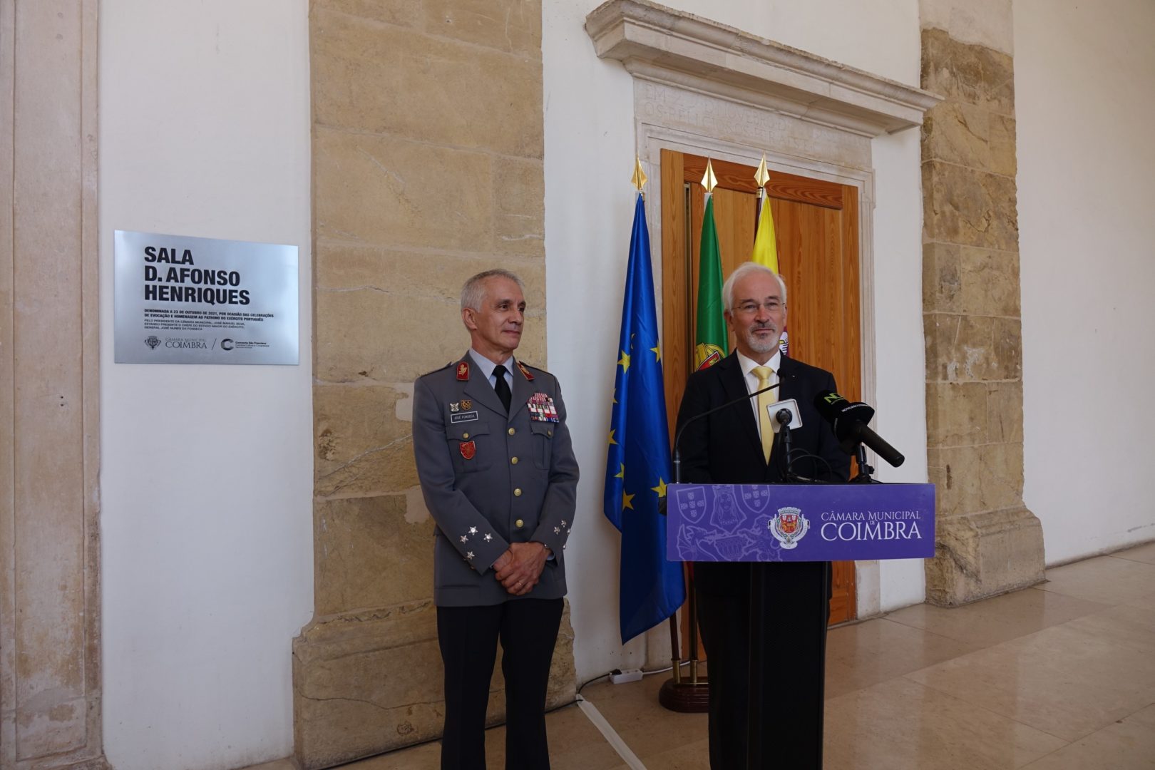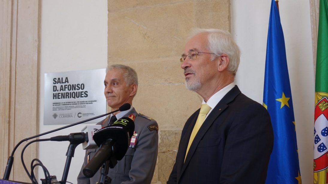 As celebrações do Dia do Exército, comemorado no dia 24 de outubro – apesar deste ano as evocações serem a dia 23 de outubro – pretende assinalar a tomada de Lisboa, em 1147, pelas tropas de D. Afonso Henriques, primeiro Rei de Portugal e Patrono do Exército. Nestas comemorações participa o Chefe do Estado-Maior do Exército, General José Nunes da Fonseca, que foi recebido pelo presidente da CM Coimbra, José Manuel Silva, nos Paços do Concelho, esta manhã. Seguiram-se as cerimónias de evocação e homenagem ao Patrono do Exército – D. Afonso Henriques, com a colocação da espada e deposição de coroa de flores no seu túmulo, na Igreja de Santa Cruz, onde decorreu depois uma celebração eucarística.