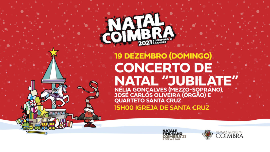 “Jubilate”, que integra a programação de Natal promovida pelo Município de Coimbra, é de entrada livre e conta com a participação da mezzo-soprano Nélia Gonçalves, do organista José Carlos Oliveira e do quarteto Santa Cruz, composto por António Ramos (violino), Clara Dias (violino), Diana Antunes (viola d’arco) e Rogério Peixinho (violoncelo).