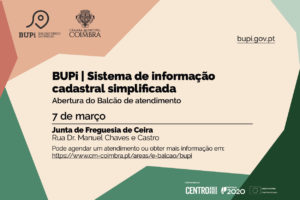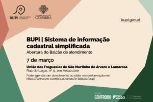 “Desde 5 de julho de 2021 que a CMC oferece o Espaço BUPi, um balcão de atendimento que através de um sistema de cadastro simplificado vem possibilitar a todos os munícipes de Coimbra a identificação e o registo das propriedades rústicas e mistas de forma simples e gratuita, por recurso a uma plataforma digital, o Balcão Único do Prédio (BUPi).
