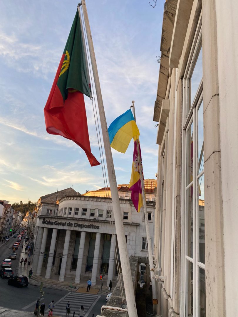 Por forma a manifestar a total solidariedade da CM de Coimbra para com a população ucraniana, expressando o nosso desejo e apelo a que seja colocado um fim a este conflito e que se estabeleça a paz e o diálogo, a CM hasteou no seu edifício a bandeira ucraniana.