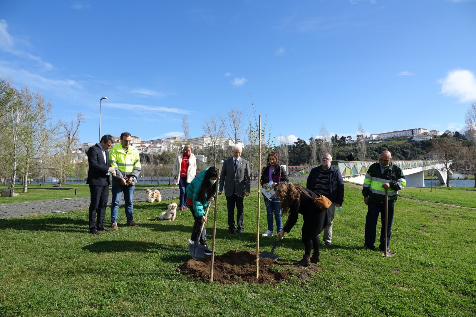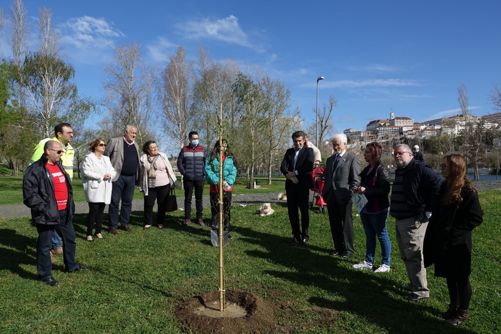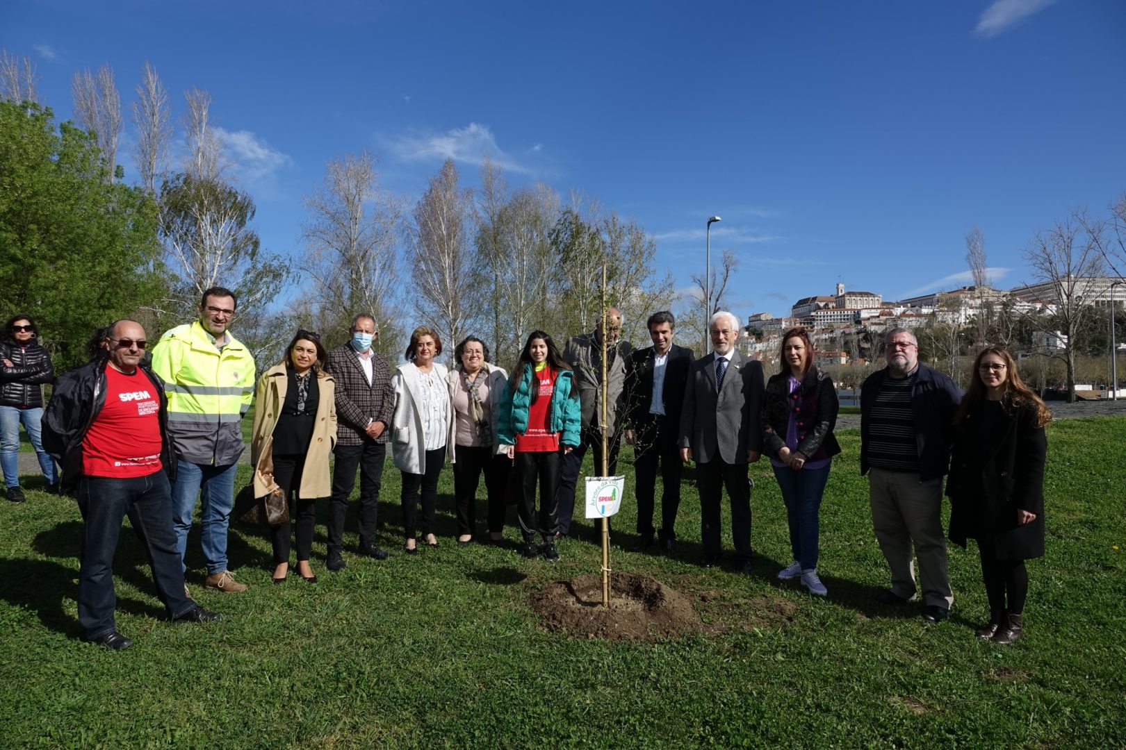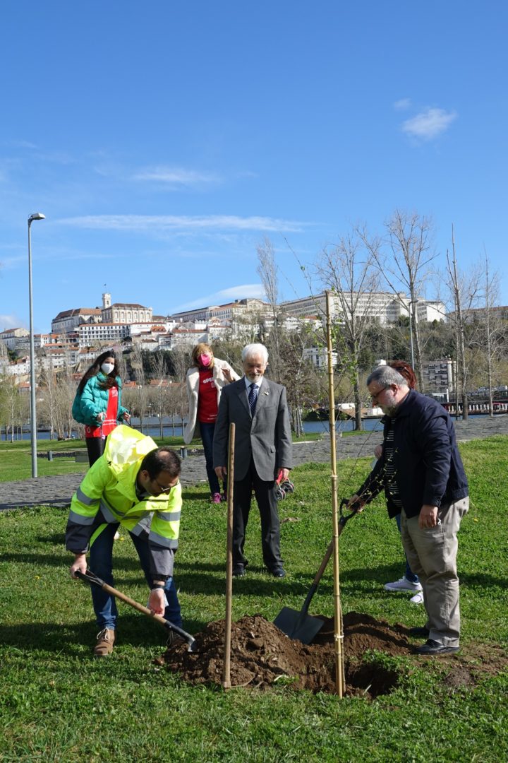 A primeira ação para comemorar a efeméride começou bem cedo, pelas 9h30, com a plantação simbólica de uma árvore (ulmeiro) na margem esquerda do Parque Verde do Mondego, junto à Ponte Pedro e Inês. A iniciativa foi proposta pela Sociedade Portuguesa de Esclerose Múltipla (SPEM) e rapidamente aceite pela CM de Coimbra, devido ao grande simbolismo que marcou a plantação da “árvore da vida”, tal como foi referido pelos responsáveis da SPEM presentes na iniciativa. O presidente da CM de Coimbra, José Manuel Silva, marcou presença nesta plantação simbólica com os vereadores Carlos Lopes e Francisco Queirós. “Esta árvore da vida é em nome e em homenagem da natureza, do ambiente, e das pessoas que precisam da nossa solidariedade e do nosso cuidado. É um ato simbólico de grande profundidade com a plantação singela de uma árvore em que queremos representar toda a solidariedade e vida da humanidade”, explicou José Manuel Silva.