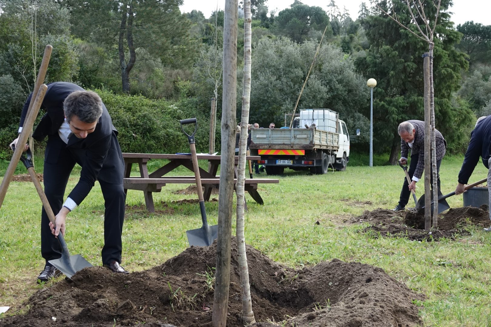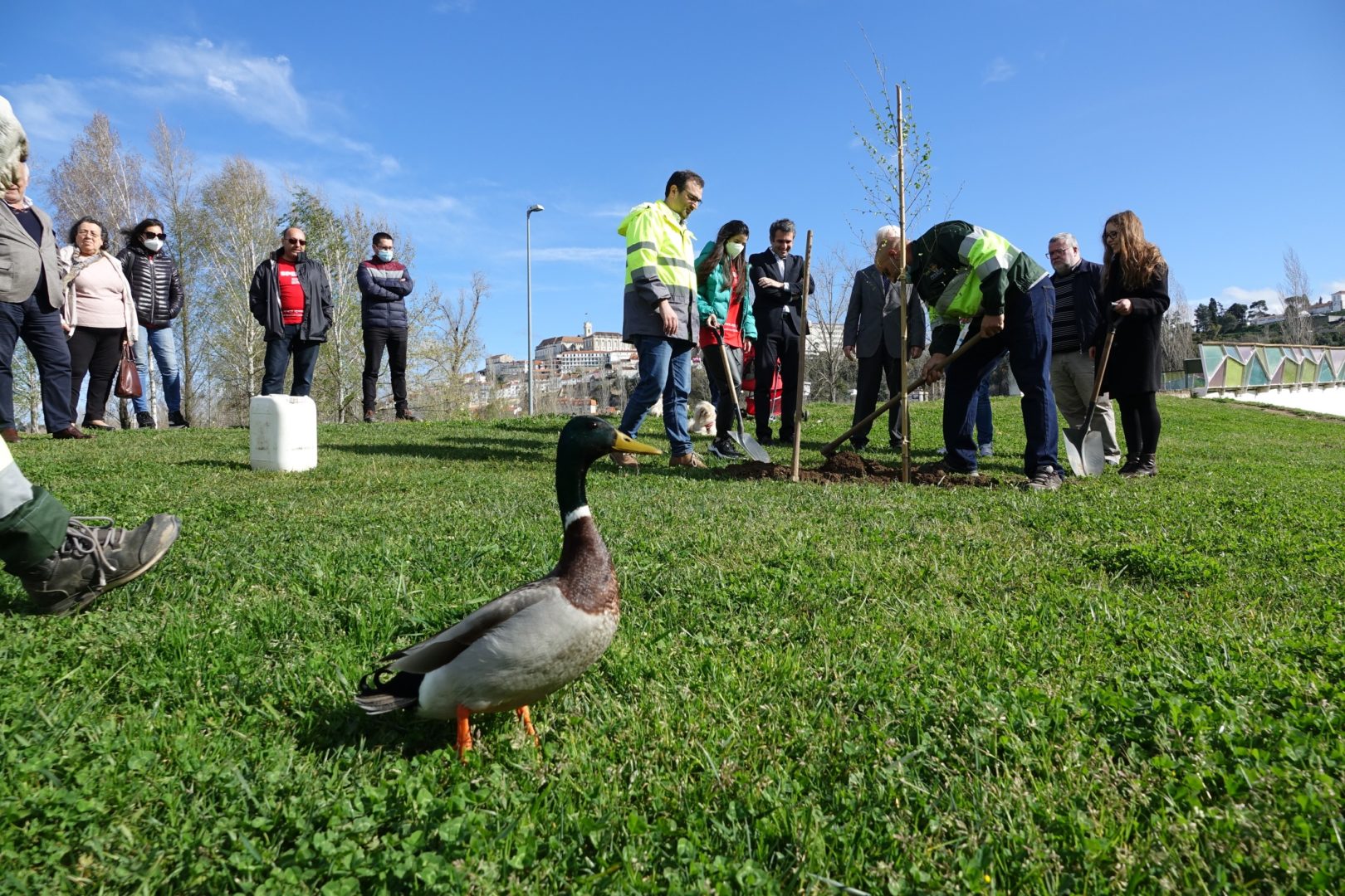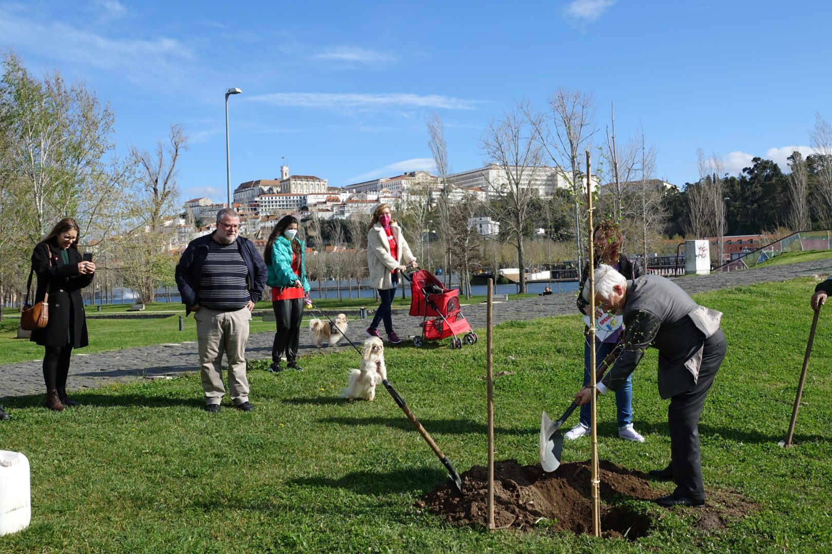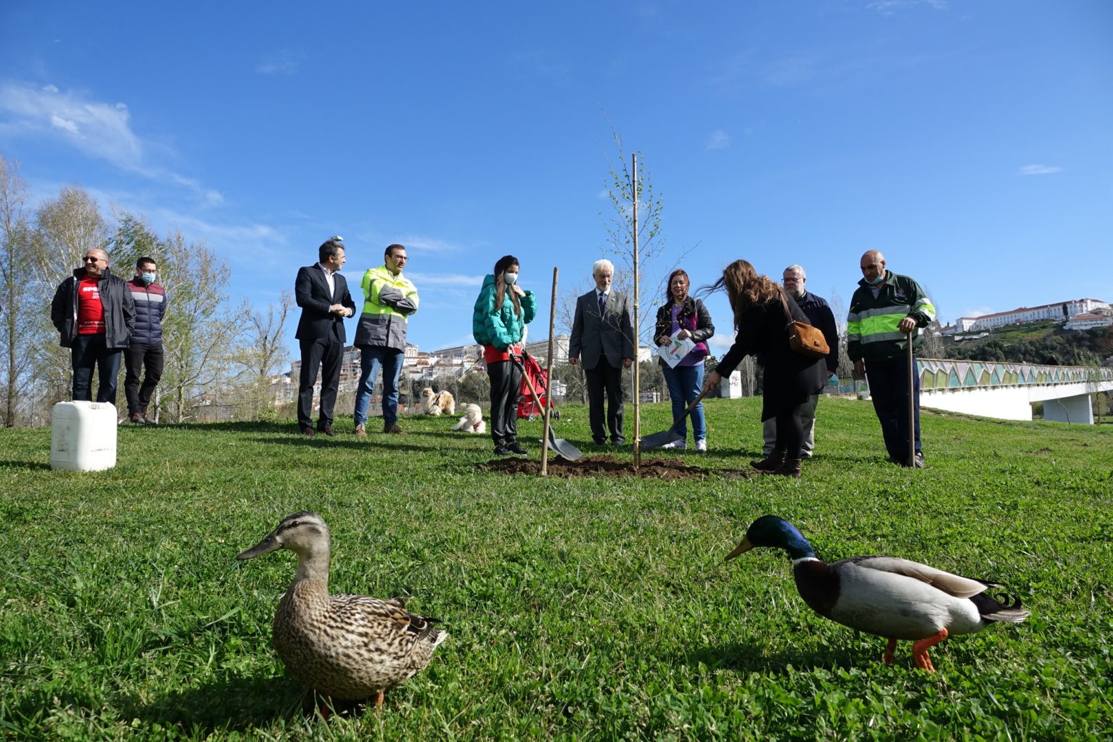 A primeira ação para comemorar a efeméride começou bem cedo, pelas 9h30, com a plantação simbólica de uma árvore (ulmeiro) na margem esquerda do Parque Verde do Mondego, junto à Ponte Pedro e Inês. A iniciativa foi proposta pela Sociedade Portuguesa de Esclerose Múltipla (SPEM) e rapidamente aceite pela CM de Coimbra, devido ao grande simbolismo que marcou a plantação da “árvore da vida”, tal como foi referido pelos responsáveis da SPEM presentes na iniciativa. O presidente da CM de Coimbra, José Manuel Silva, marcou presença nesta plantação simbólica com os vereadores Carlos Lopes e Francisco Queirós. “Esta árvore da vida é em nome e em homenagem da natureza, do ambiente, e das pessoas que precisam da nossa solidariedade e do nosso cuidado. É um ato simbólico de grande profundidade com a plantação singela de uma árvore em que queremos representar toda a solidariedade e vida da humanidade”, explicou José Manuel Silva.
