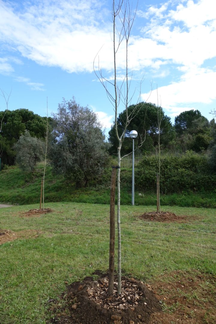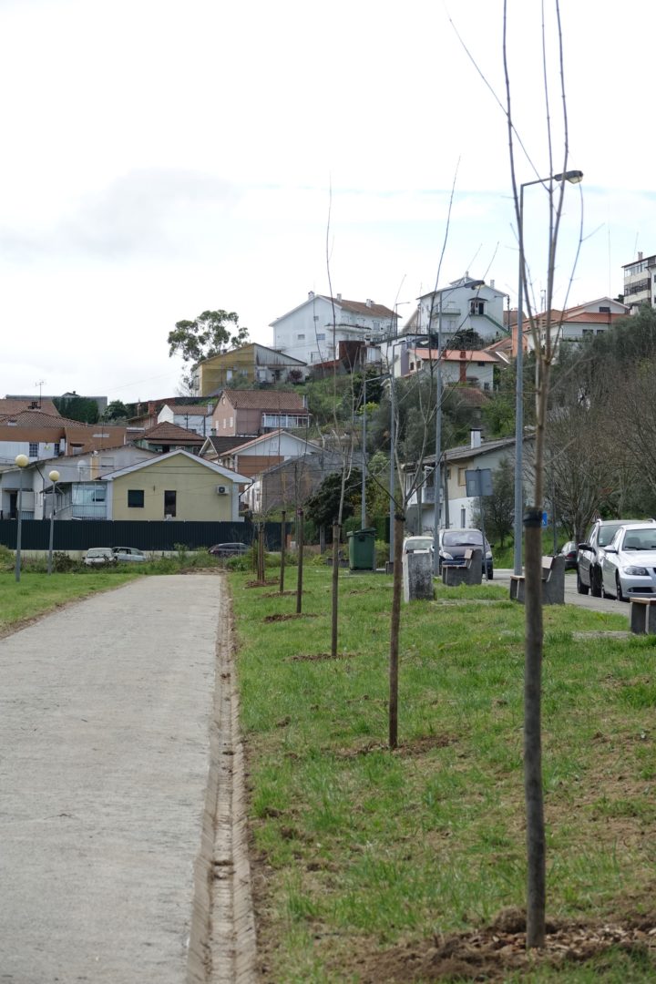 Nesse sentido, foram plantadas 35 árvores relacionadas com o cariz urbano das edificações existentes e com o parque público onde foram instaladas. Foram também recuperados os caminhos pedonais existentes e reabilitados os bancos. O espaço foi ainda completado com algum mobiliário urbano, nomeadamente algumas mesas de apoio a piqueniques que convidam ao lazer nesta área residencial.