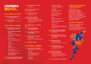 A sexta edição da mostra dedicada à Banda Desenhada é uma iniciativa consolidada na agenda cultural da cidade de Coimbra estando de regresso à Casa Municipal da Cultura, após interregno no ano transato devido à situação pandémica, nos dias 25, 26 e 27 de março.
