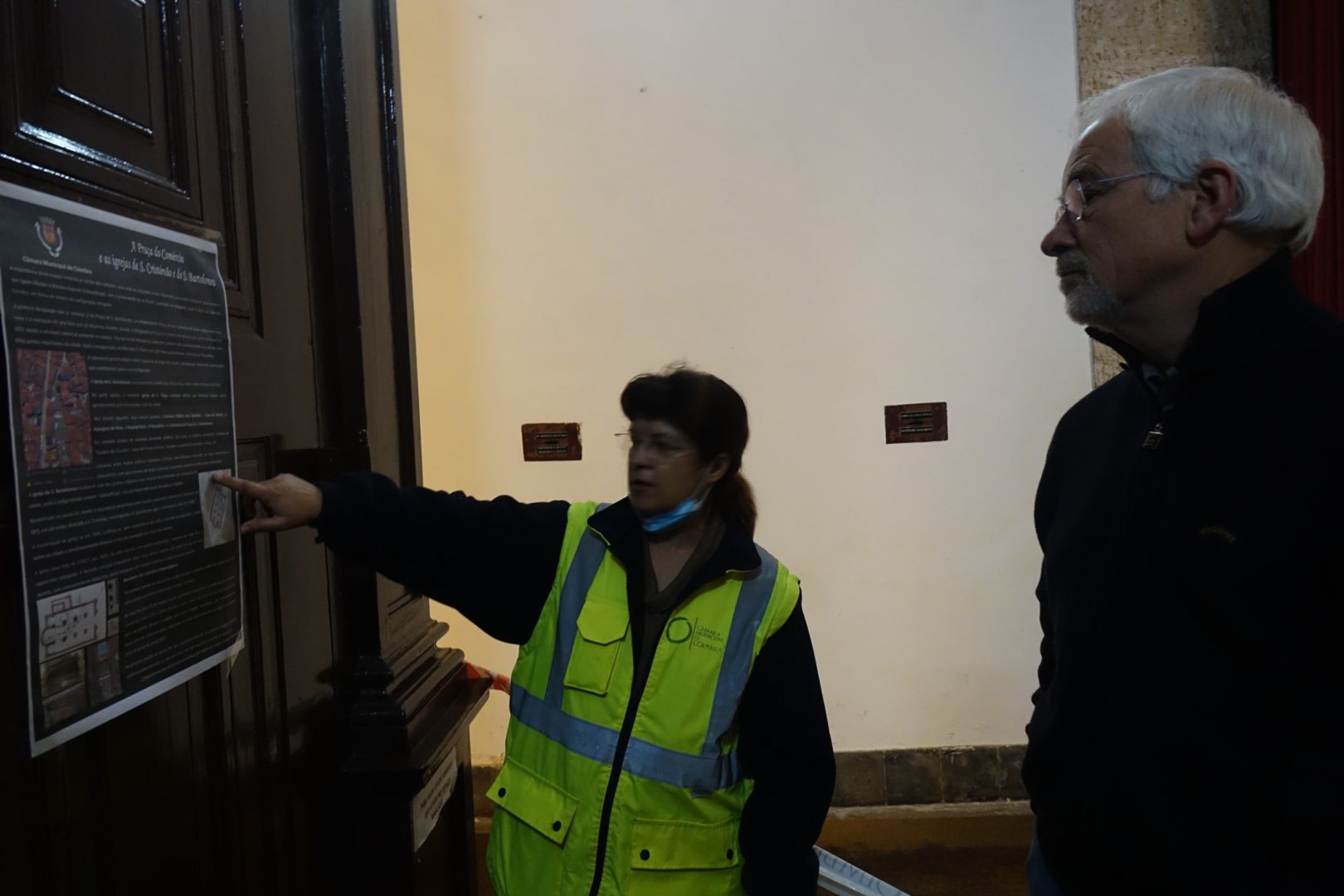 A igreja de São Bartolomeu, na Praça do Comércio, em pleno coração da baixa de Coimbra, tem uma cave onde se encontram vestígios da antiga igreja medieval e os respetivos enterramentos. Foi isso mesmo que fez, esta manhã, o presidente da CM Coimbra, José Manuel Silva, acompanhado por membros do executivo e pelos técnicos municipais que acompanham a obra.