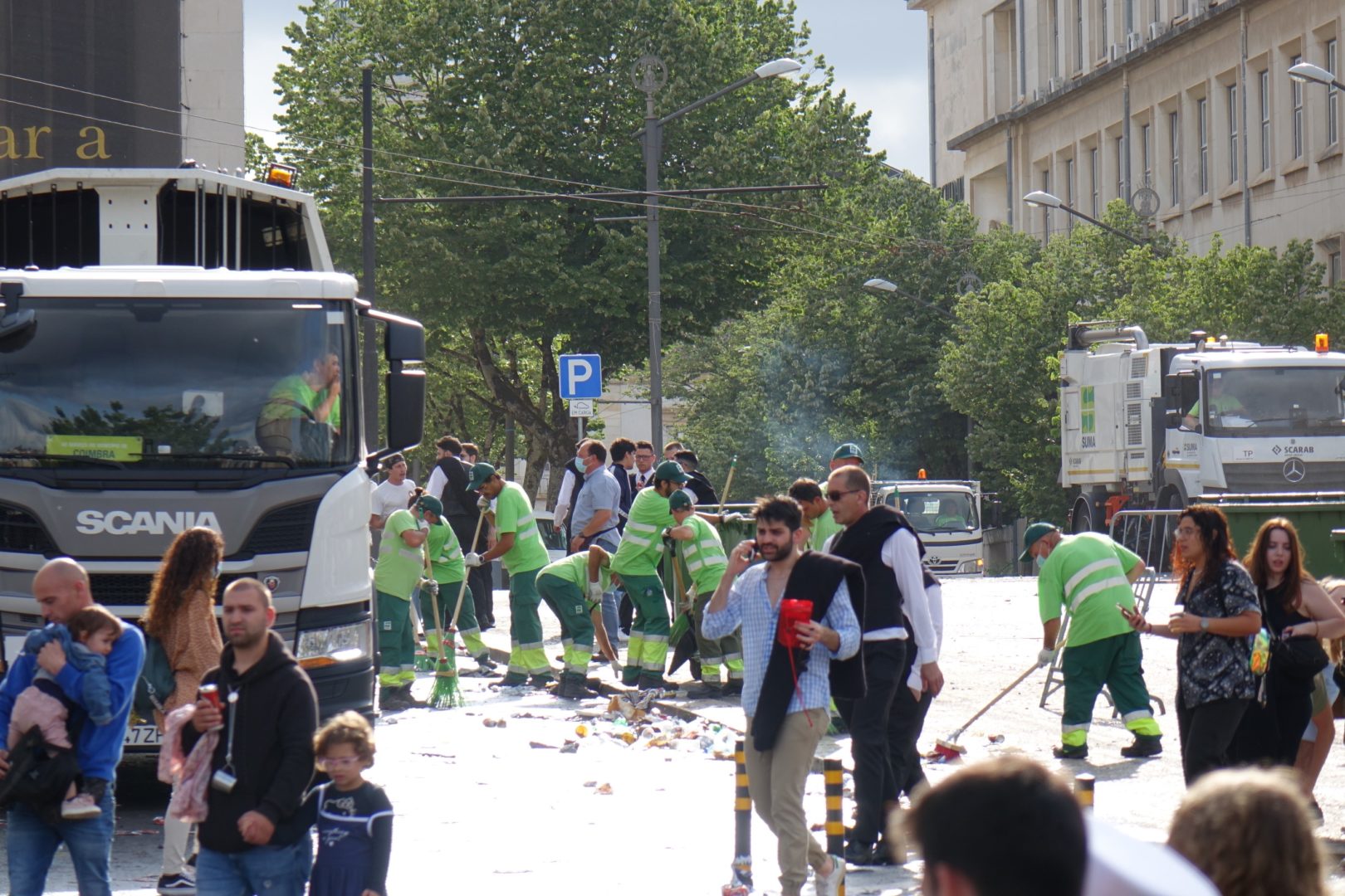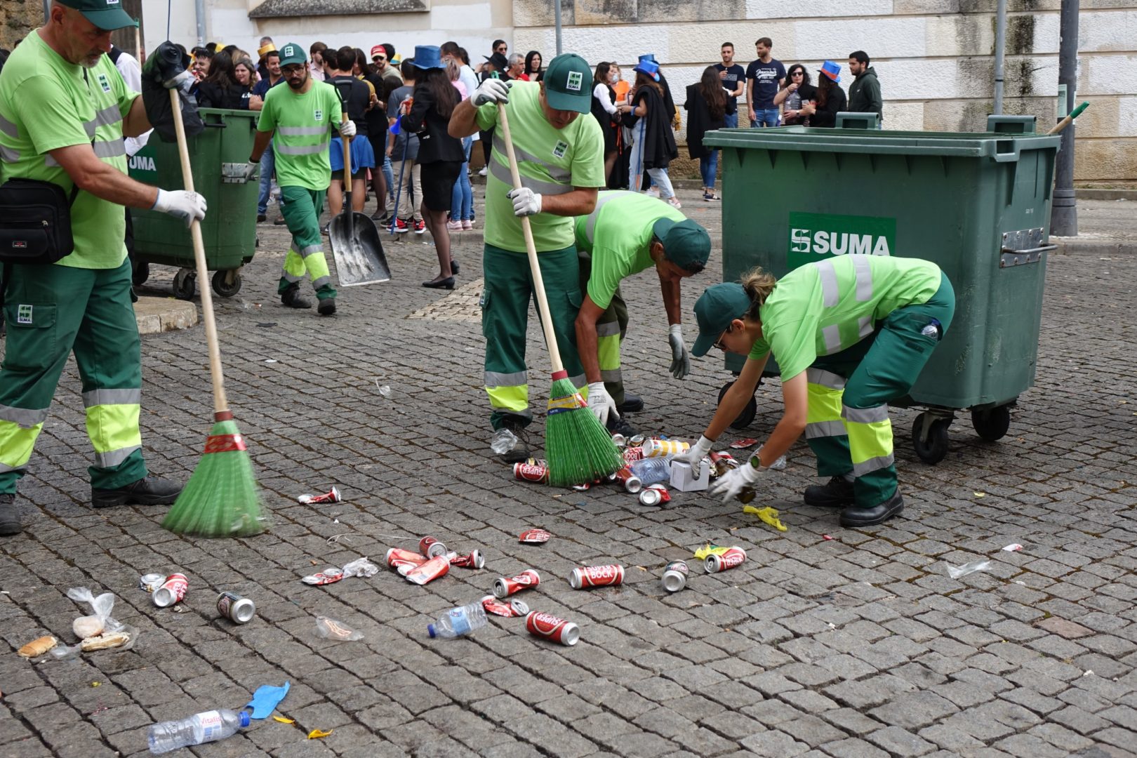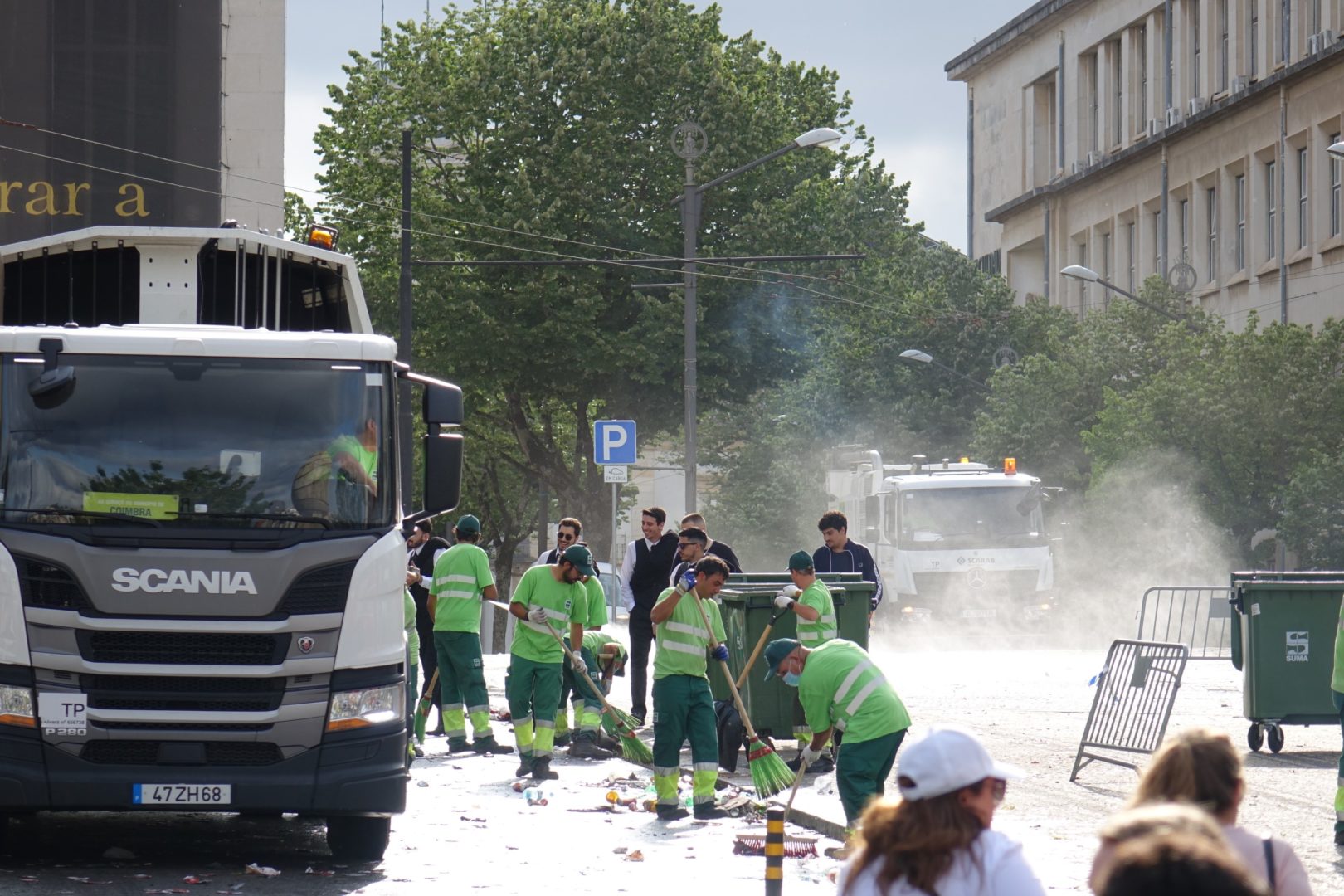 A operação de recolha de lixo e de limpeza das ruas foi desenvolvida imediatamente a seguir à passagem dos carros alegóricos dos estudantes, entre a Alta e a Baixa da cidade, e envolveu 73 operacionais e 22 meios mecânicos.