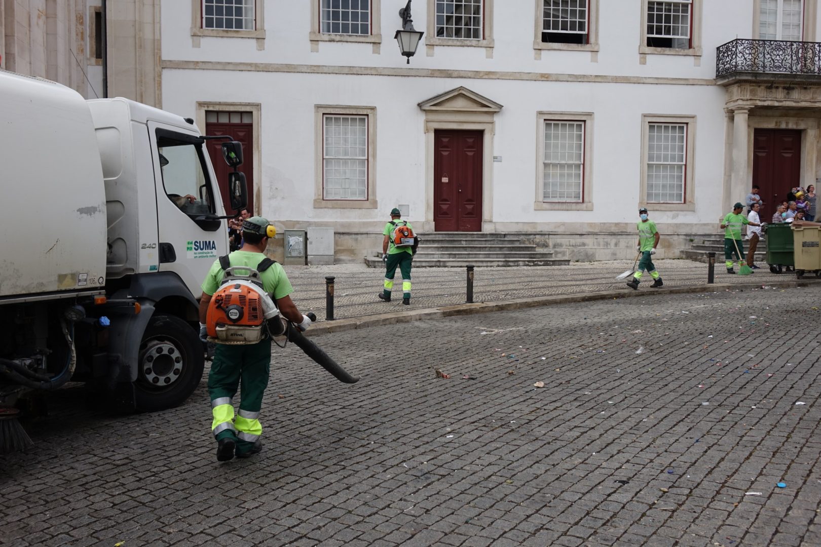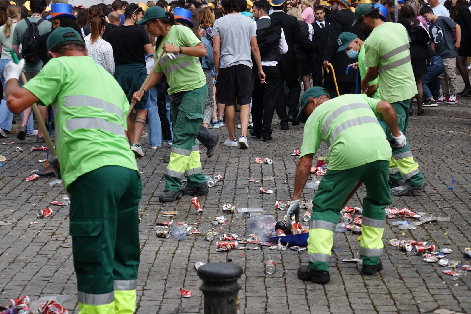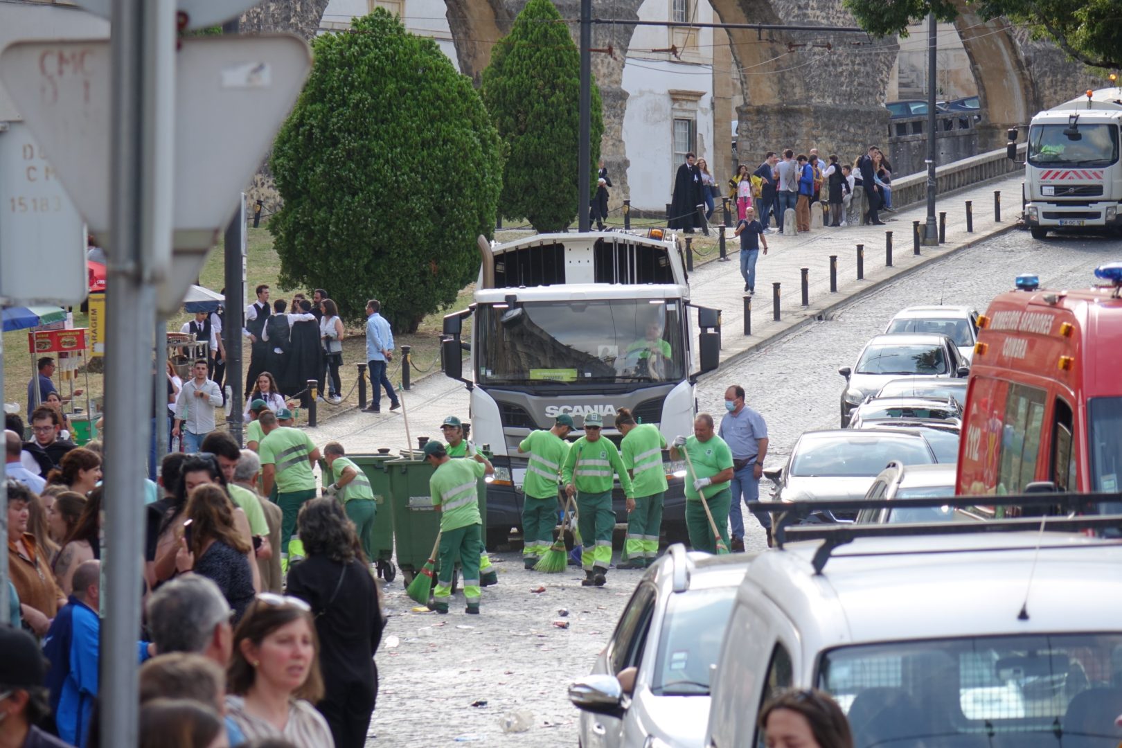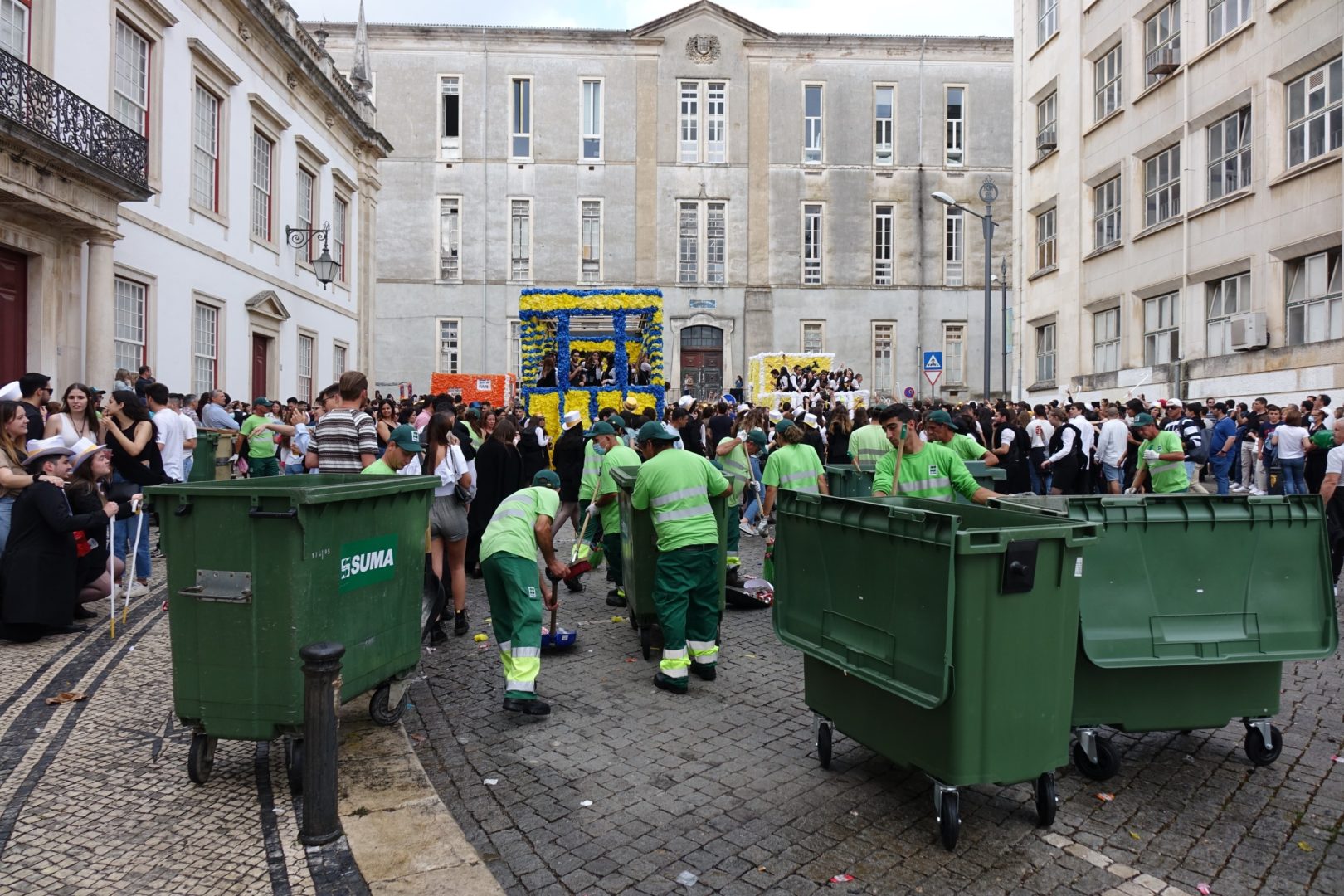A operação de recolha de lixo e de limpeza das ruas foi desenvolvida imediatamente a seguir à passagem dos carros alegóricos dos estudantes, entre a Alta e a Baixa da cidade, e envolveu 73 operacionais e 22 meios mecânicos.