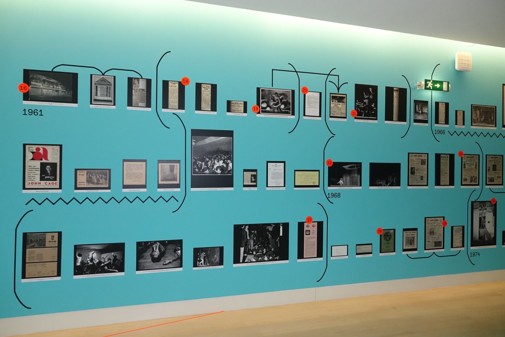 Organizada em três núcleos, a exposição aborda “por um lado, os anos de formação de Madalena Biscaia Farinha (mais tarde Perdigão) em Coimbra e a década de 1950, enquadrando as atividades das associações musicais a que pertence e dos grupos universitários TEUC e CITAC. Por outro, o fim dos anos 1960 e a vinda de Merce Cunningham e de outras companhias de fôlego ao Teatro de Gil Vicente (mais tarde TAGV) em plena agitação estudantil e ao lado da atividade do CAPC e da emergência da performance arte. Por fim, o surgimento da chamada “Nova Dança Portuguesa” na década de 1990 que coincide com o apogeu da Bienal Universitária de Coimbra, numa altura em que a cidade era um ponto expressivo da contracultura no país”, como também referem os curadores.
