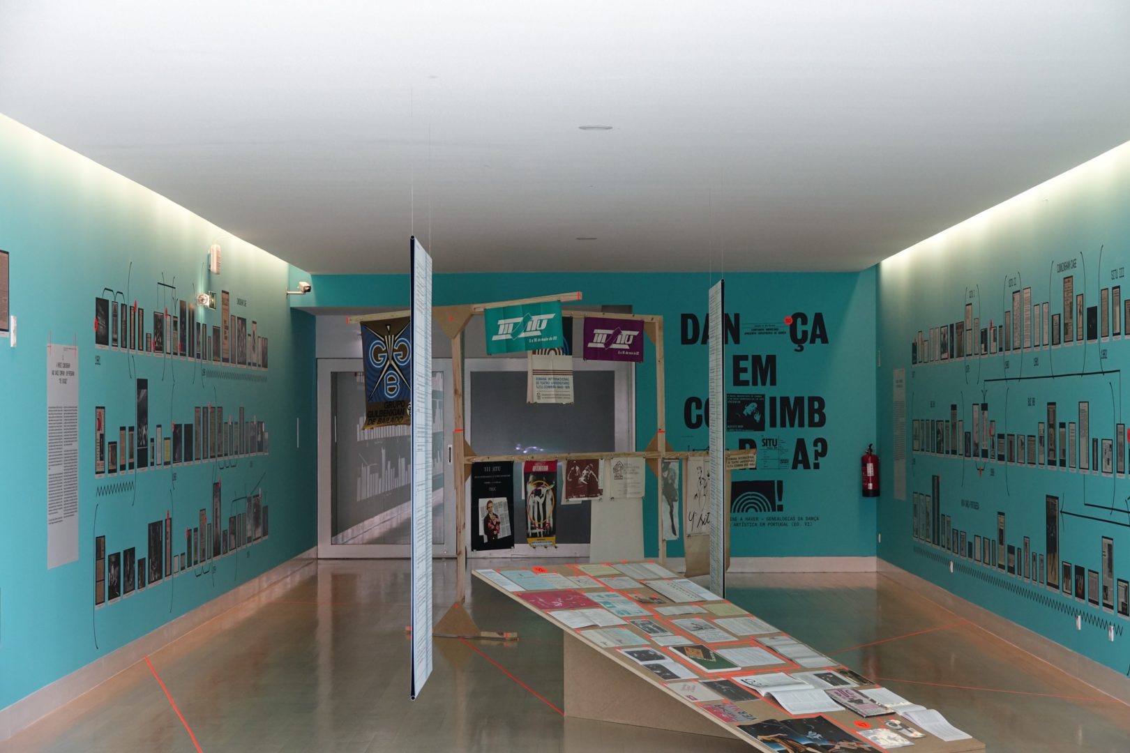 “Dança em Coimbra?!” é um projeto contínuo de investigação de práticas, arquivos e memória da dança em Portugal, que passa agora a inscrever momentos da história da dança na cidade, desde a passagem da Merce Cunningham and Dance Company, em 1966, até ao trânsito das gerações fundadoras da Nova Dança Portuguesa, na década de 90. Nas palavras dos curadores Ana Bigotte Vieira e João dos Santos Martins a exposição é “um exercício de cronologia comparada que procura dar a ver os modos como a apresentação e o ensino de dança na cidade, sempre vistos como algo exterior (não autóctone), se interligam com tensões maiores”.
