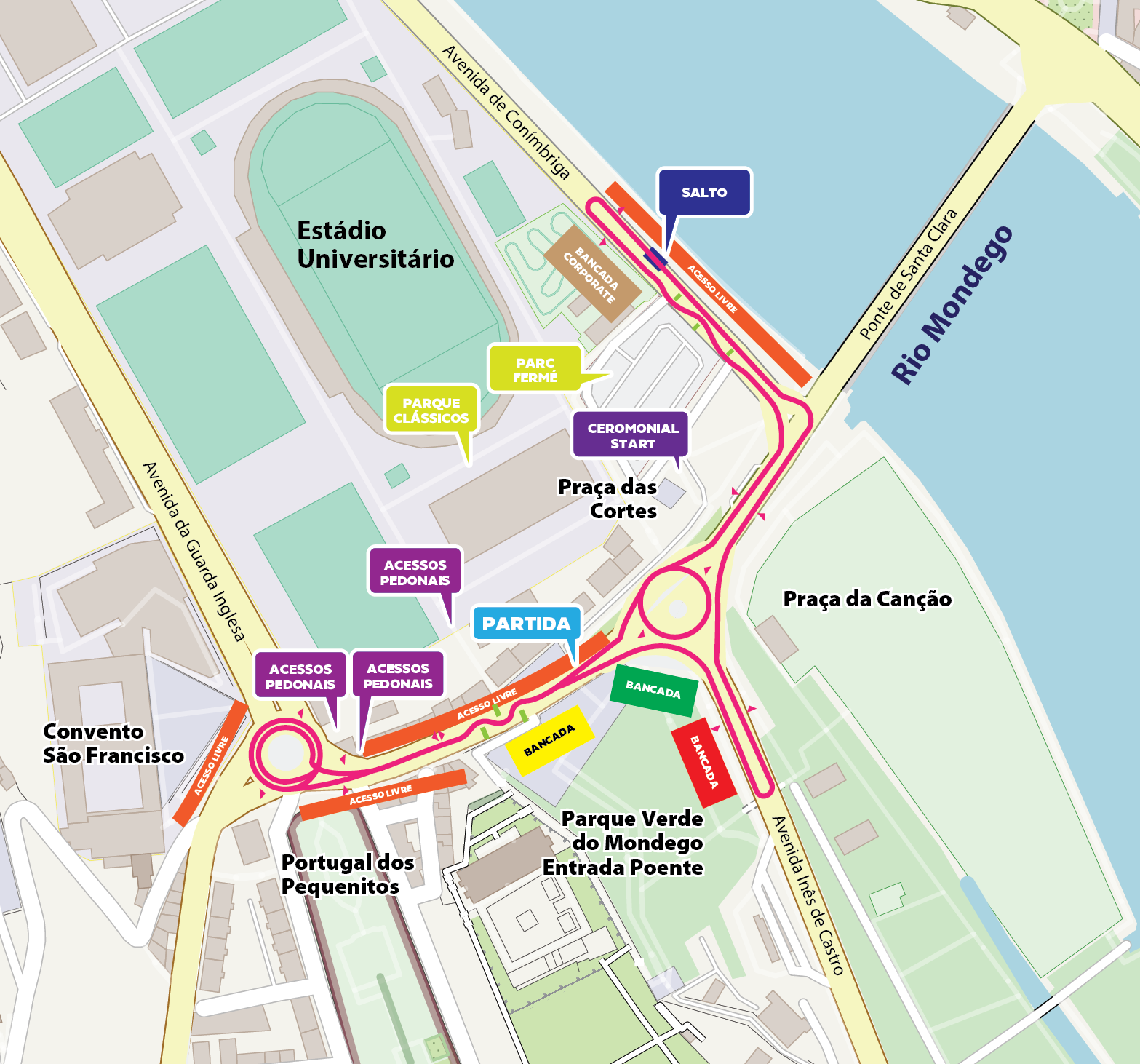 A partir das 21h00 do dia 18 efetuar-se-á o corte efetivo de trânsito até às 09h00 do dia 20 de maio, nas seguintes artérias: avenida Inês de Castro, logo a seguir às bombas da Cepsa (lado sul); Ponte de Santa Clara; avenida de Conimbriga; avenida Inês de Castro; avenida João das Regras; rua Alberto Carlos Pinto Abreu, junto à rotunda de Baden-Powell, ficando desde a rotunda até às proximidades do Convento São Francisco acessível apenas a moradores; avenida da Guarda Inglesa, junto à rotunda do Aldi, ficando apenas acessível até à proximidade do Convento São Francisco apenas a moradores; rua Volta das Calçadas, ficando apenas acessível a moradores; calçada Rainha Santa Isabel acessível apenas a moradores; inversão do sentido de trânsito na rua das Parreiras.