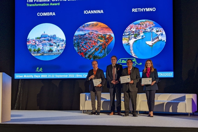 Os Serviços Municipalizados de Transportes Urbanos de Coimbra (SMTUC) e a CM de Coimbra foram distinguidos com a atribuição do segundo lugar do “CIVITAS Awards 2022”, uma iniciativa que marca a celebração do 20º aniversário da Rede CIVITAS (CIty-VITAlity-Sustainability) para a promoção da mobilidade urbana sustentável. A cerimónia da entrega dos prémios decorreu no passado dia 20 de setembro, durante a “Urban Mobility Days Conference 2022”, em Brno, na República Checa, e onde Coimbra esteve representada através dos SMTUC, por Luís Santos, do Gabinete de Estudos e Projetos dos serviços municipalizados.