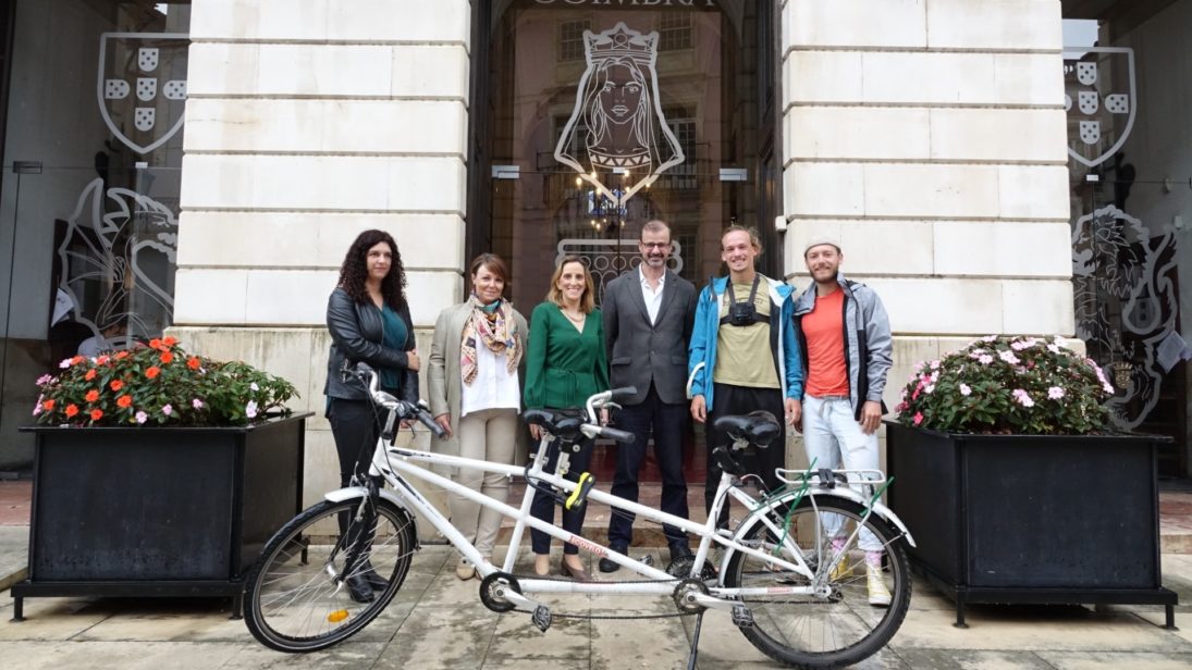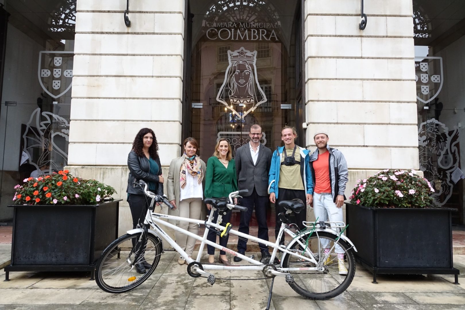 Nesse âmbito, Nathan Laemmel e Tanguy Citron partiram de Poitiers a pedalar uma bicicleta dupla (tandem), e foram hoje, dia 19 de outubro, recebidos no Município. Os dois jovens fizeram mais de 1.200 quilómetros de forma sustentável. Nathan Laemmel e Tanguy Citron vão ficar dois dias em Coimbra a visitar os locais mais emblemáticos na cidade.