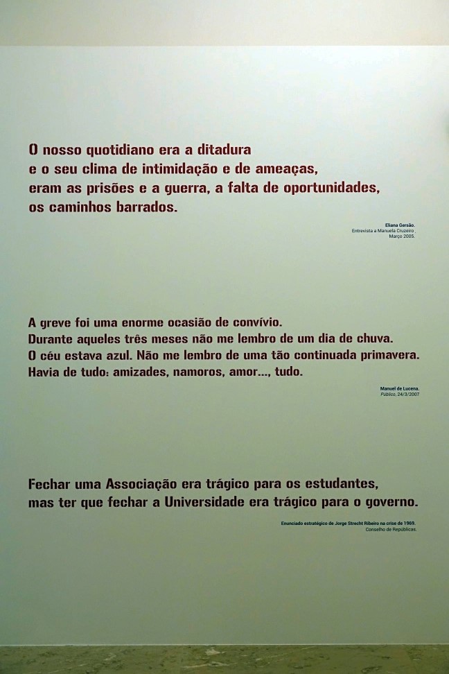 O ministro da Cultura, Pedro Adão e Silva, presente na cerimónia de inauguração, começou por enaltecer a ação reivindicativa dos estudantes antes e depois do 25 de Abril de 1974, afirmando que “o movimento estudantil foi o processo que criou as condições para o golpe militar, assente na erosão dos pilares daquilo que era o regime: a universidade e a Igreja”. Já o presidente da Câmara de Coimbra, José Manuel Silva, lembrou que “Coimbra foi uma cidade que participou com intensidade nos movimentos estudantis e que deu um enorme contributo para a liberdade, para a democracia, para a palavra do povo – algo que nunca podemos dar por adquirido”.
