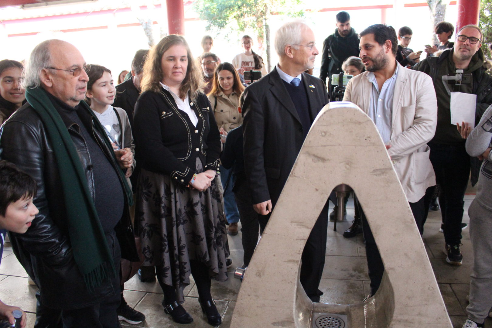 A iniciativa foi desenvolvida por uma equipa multidisciplinar da empresa municipal, que envolveu profissionais de engenharia e de arquitetura paisagista, em coordenação com o Município de Coimbra. A peça original foi desenhada por um colaborador da AC com formação em arquitetura e o protótipo do projeto é o que hoje se apresenta na escola Inês de Castro. O resultado é um bebedouro em forma de gota de água, pensado para vir a equipar escolas e outros espaços públicos do concelho. Como se lê na memória descritiva do projeto, “o design leve e flutuante contrasta com a sua robustez, durabilidade e funcionalidade. Executada em betão armado a peça tem um espírito autêntico e citadino”.