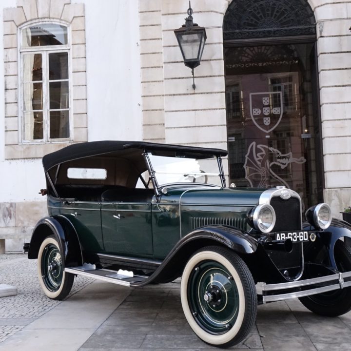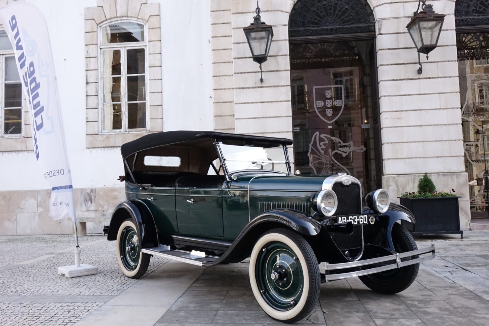 Durante a conferência de imprensa e à porta do Município de Coimbra esteve exposto um Chevrolet Phantom de 1928.