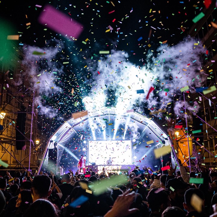 Foram oito horas e meia de música consecutiva (das 21h30 até às 6h00), três palcos distribuídos pela Baixa da cidade, oito concertos, inúmeros estilos musicais e um fantástico espetáculo piromusical, que contou com os mais recentes e impactantes elementos pirotécnicos – entre eles, lettering de grande dimensão a desenhar nos céus a frase “Boas Vindas ao Novo Ano”.