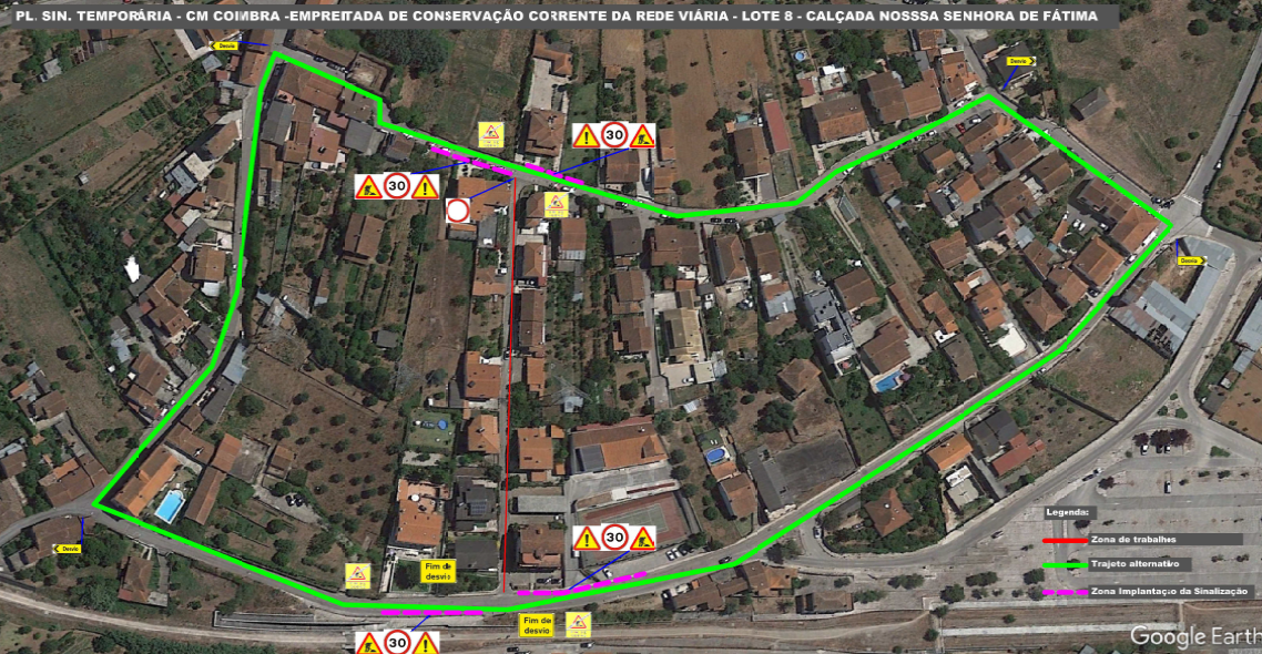 No âmbito do lote 8 da empreitada de requalificação da rede viária do concelho, vão decorrer, nos próximos dias, trabalhos de pavimentação da Calçada de Nossa Senhora de Fátima, na freguesia de Ceira. Dada a natureza dos trabalhos, a largura da via e o volume de tráfego existente durante o período diurno junto à rua Padre Estevão, é necessário proceder ao corte do trânsito na Calçada, previsivelmente entre os dias 07 e 09 de fevereiro, entre as 8h00 e as 18h00, período em que as obras vão decorrer.