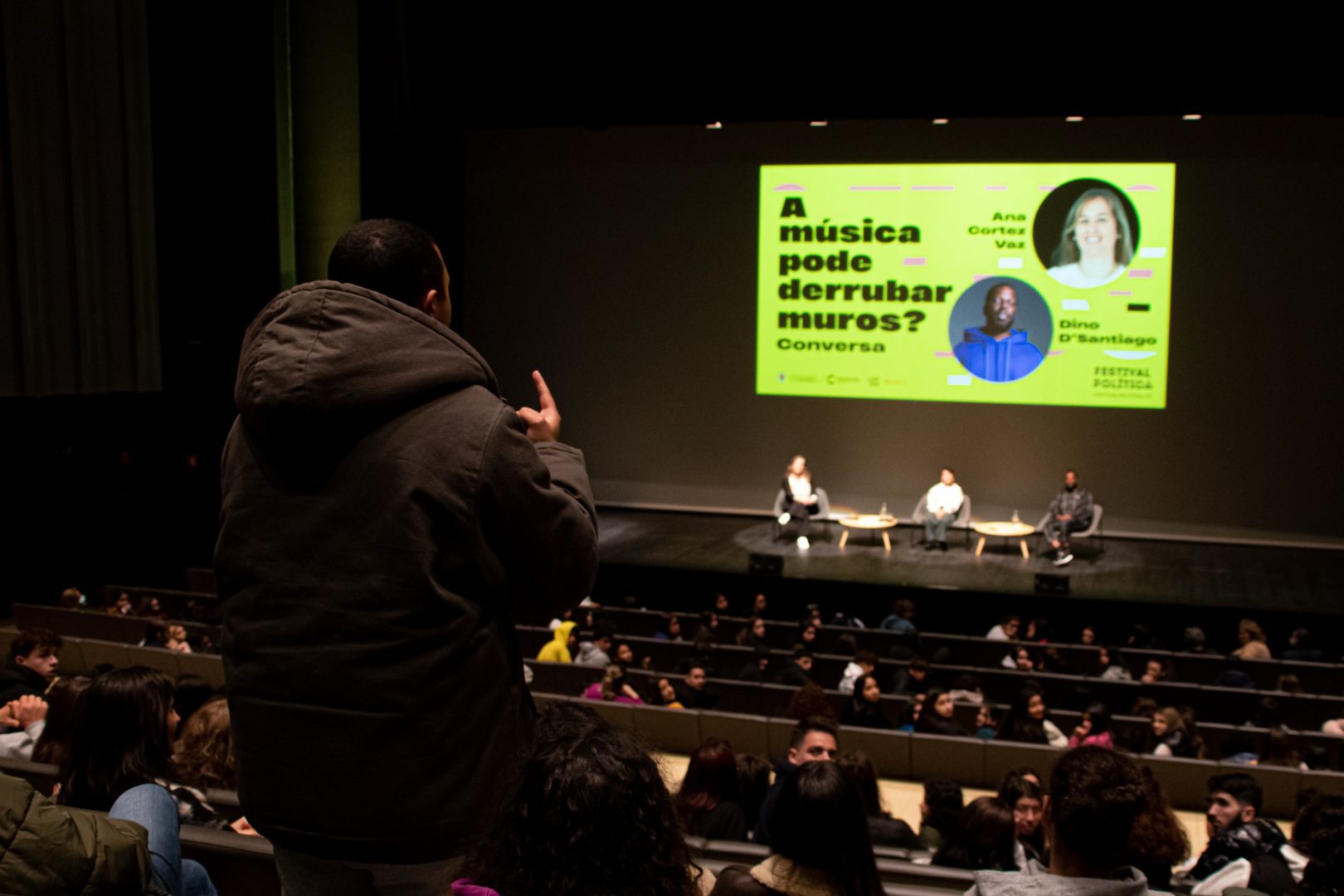 O Festival Política, no formato “warm-up”, começou com uma conversa entre o músico Dino D’Santiago e a vereadora Ana Cortez Vaz, que contou com a participação de dezenas de alunos de diferentes escolas do concelho, que alimentaram o debate com temas como a igualdade, o racismo, o papel da mulher, a importância da escola na educação das crianças e jovens e a participação ativa dos mais novos, sob o mote “A música pode derrubar muros?”. Ana Cortez Vaz defendeu que a política deve construir pontes, porque muros já há suficientes na sociedade. E foi, precisamente, isso que se procurou fazer durante os dois dias do “warm-up”.